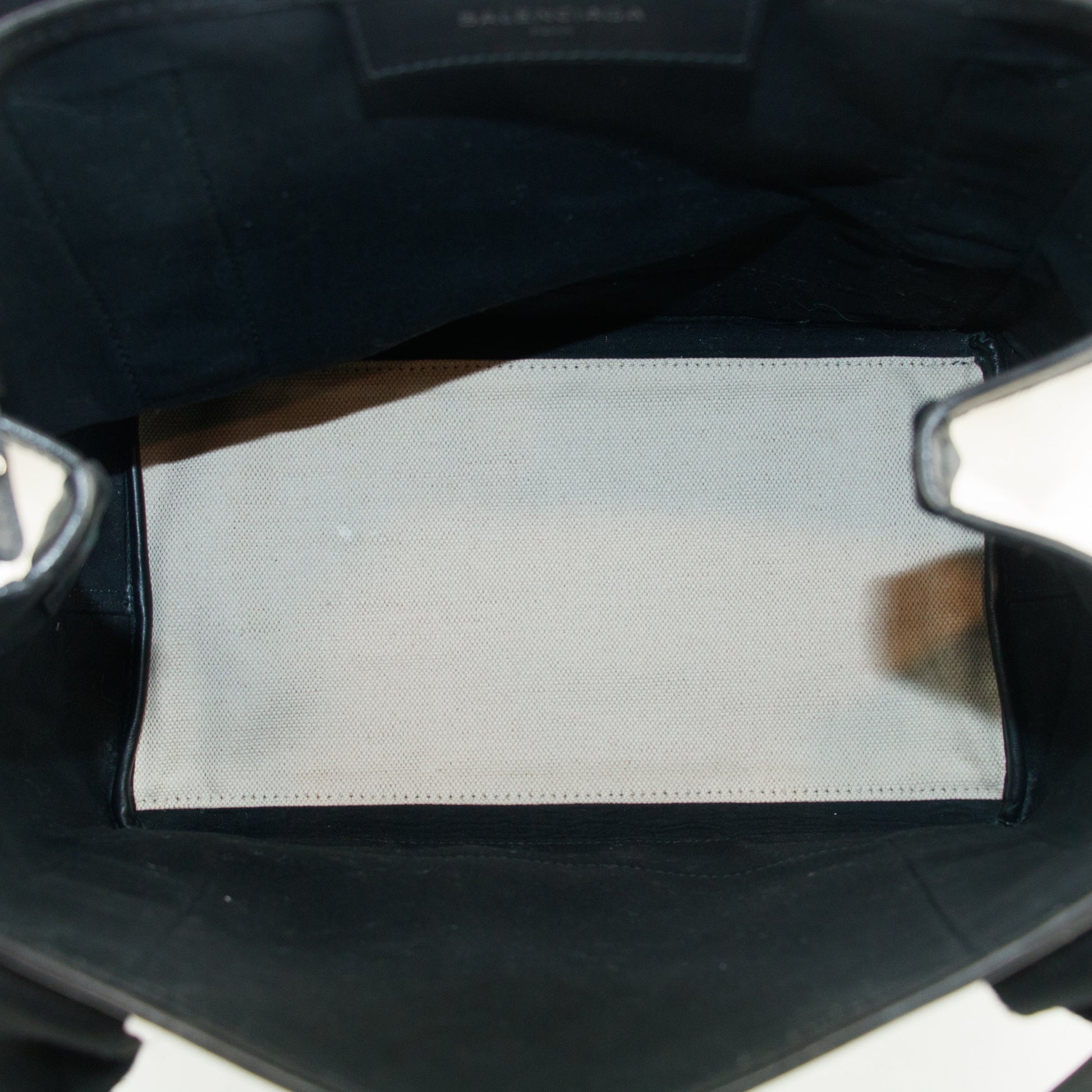 Balenciaga Logo White / Black Canvas Cabas Tote Bag-#3163