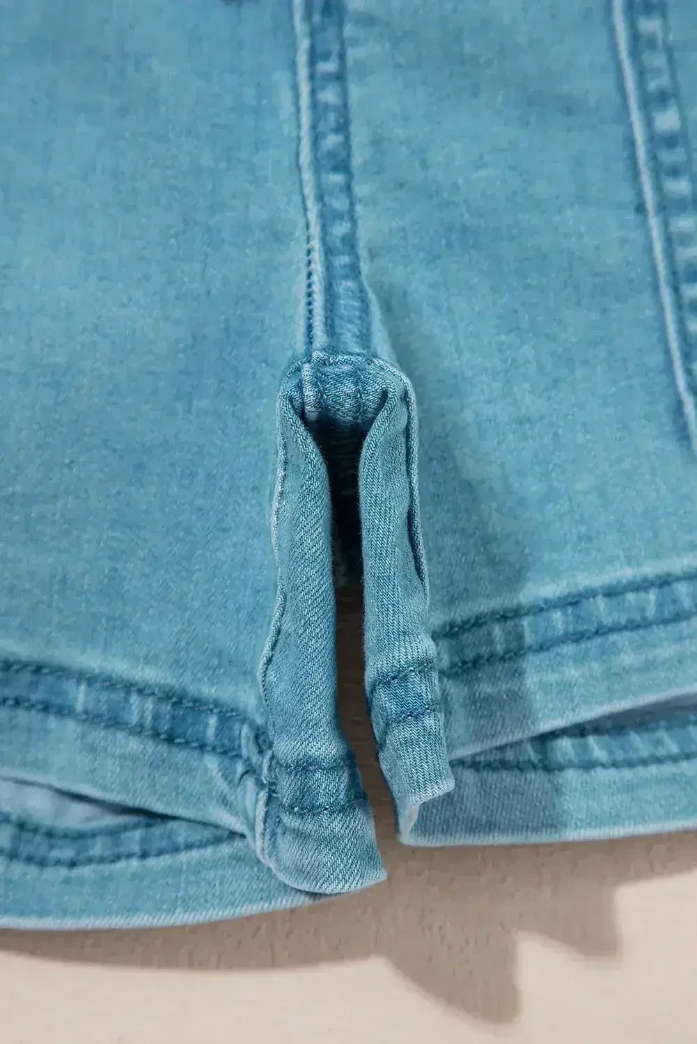 Beau Blue Drawstring Elastic Waist Denim Shorts