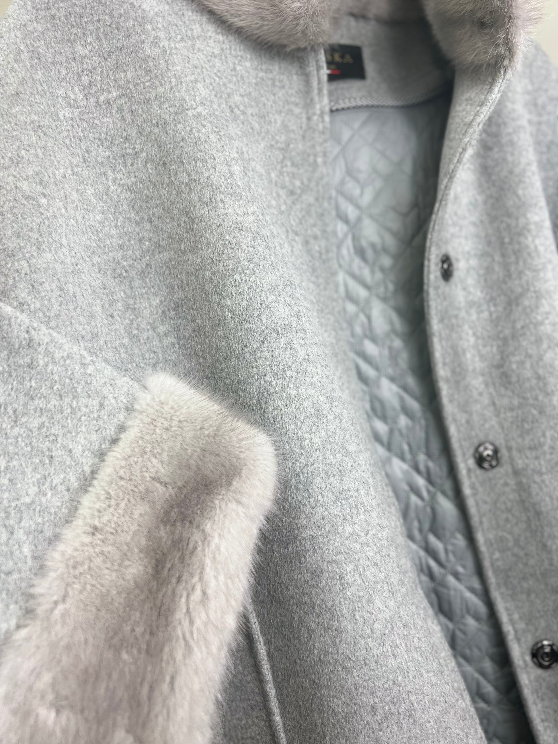 Manteau en véritable fourrure de vison scandinave et laine vierge