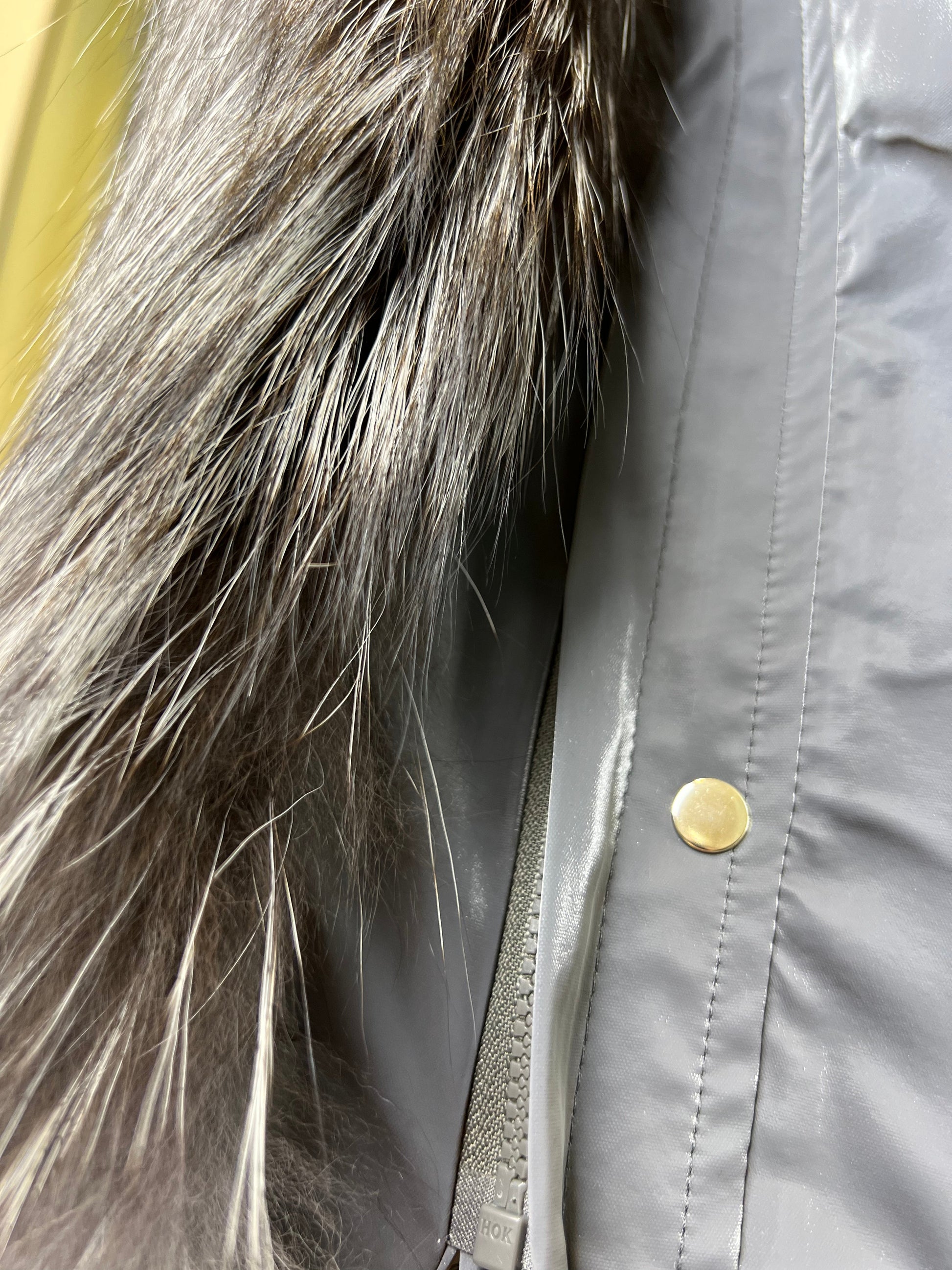 - Doublure de la capuche : véritable fourrure de renard argenté