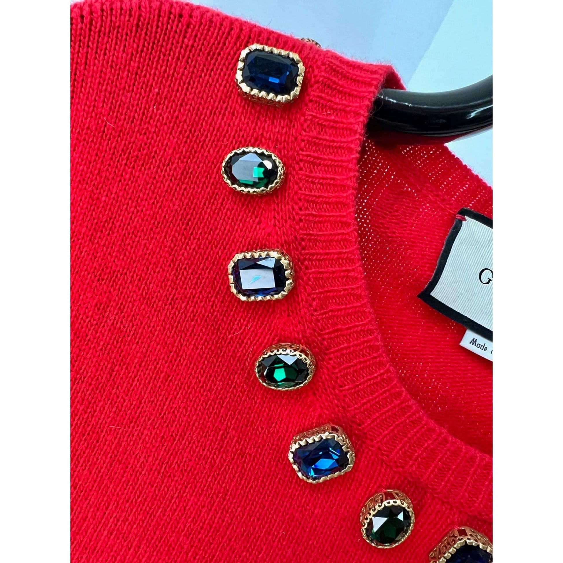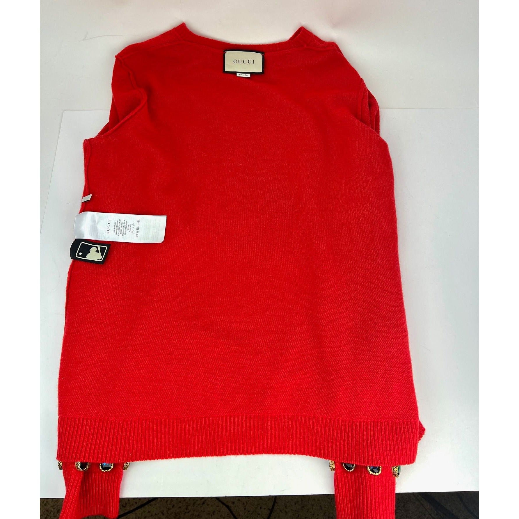 Pull en laine rouge Gucci pour femme avec logo NY Yankees
