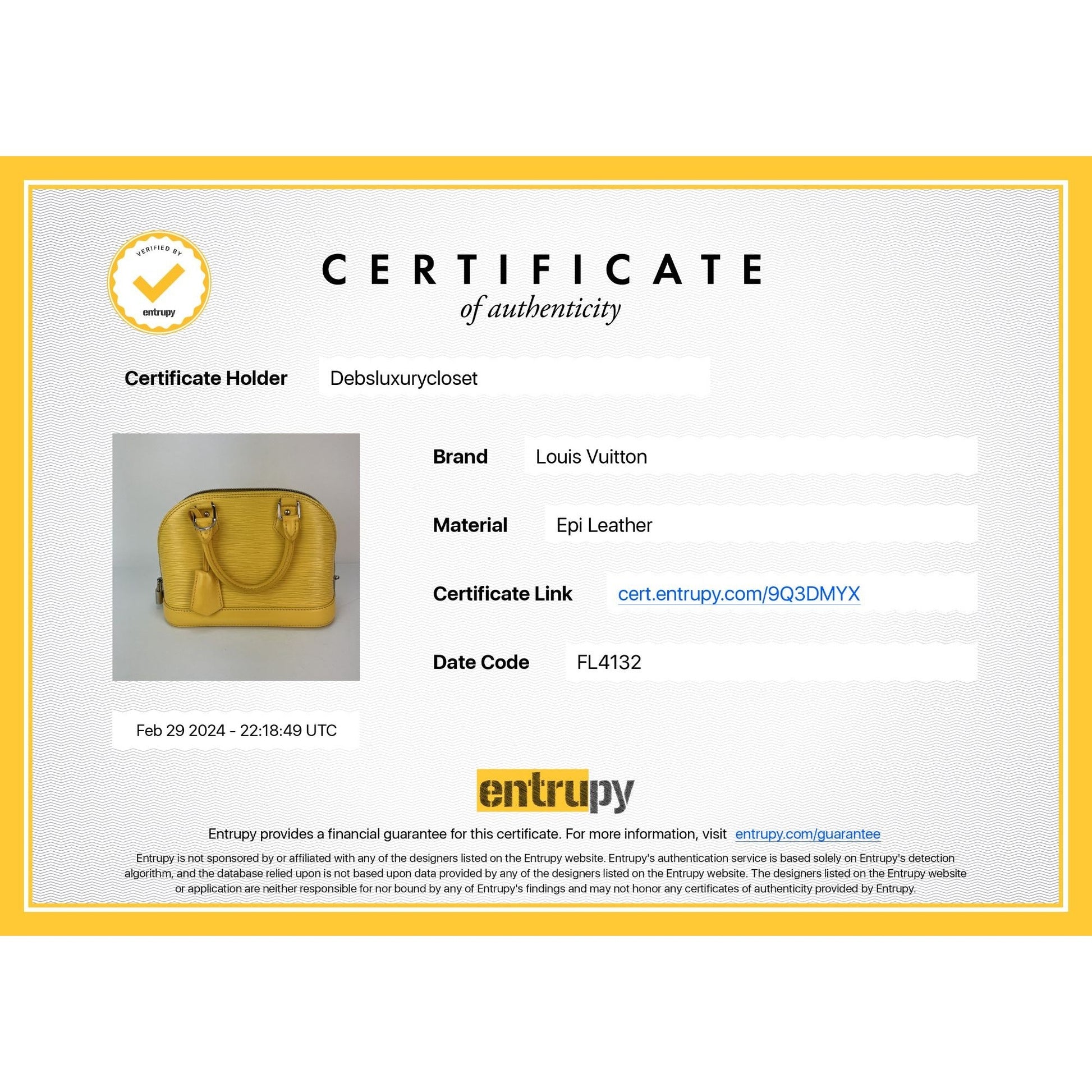 INCLUDED: LV removable Key holder(HOT STAMPED F.L)*LV Lock #450