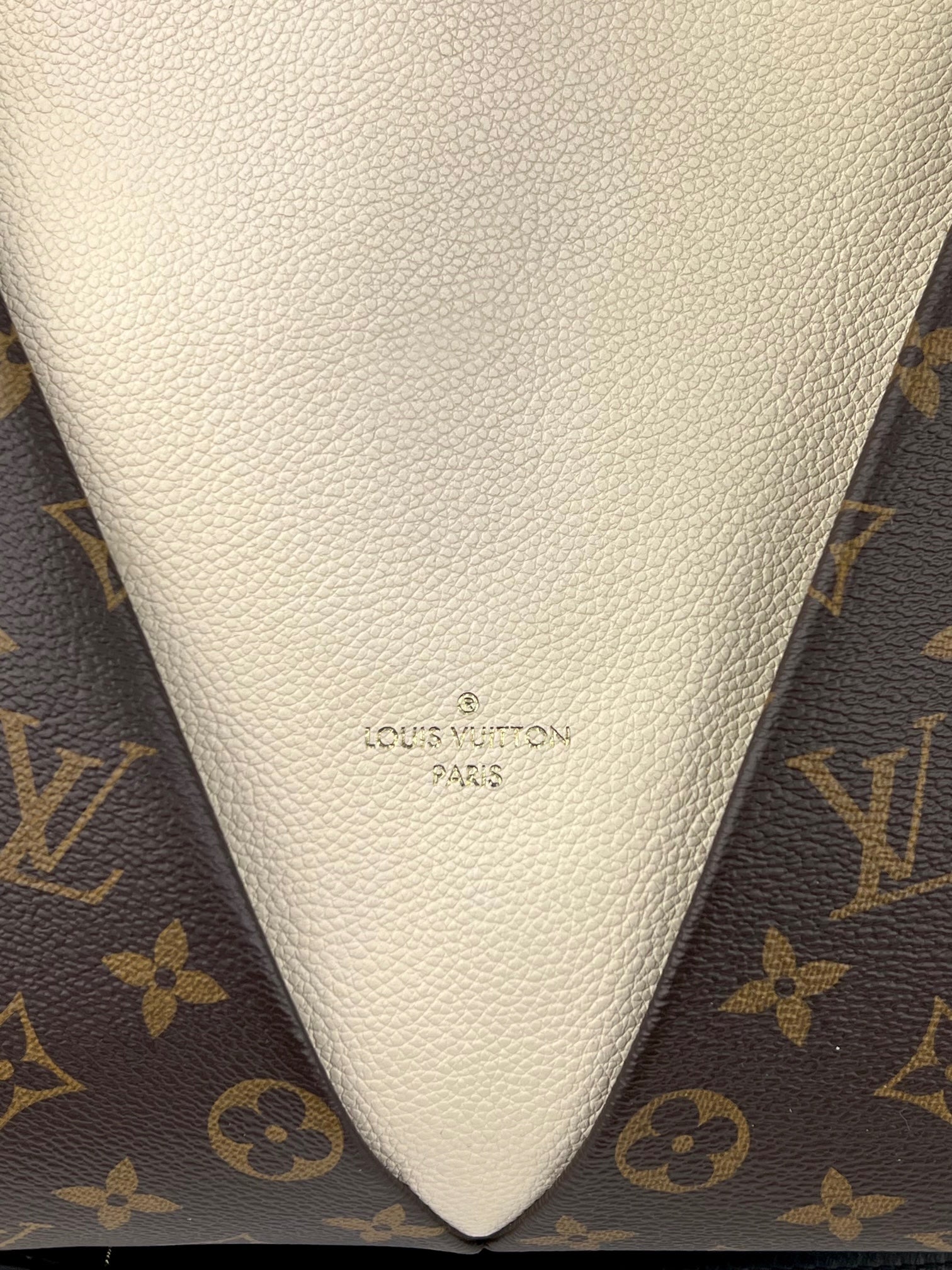 Louis Vuitton Monogram Braided V Tote MM White Leather Shoulder Hand Bag