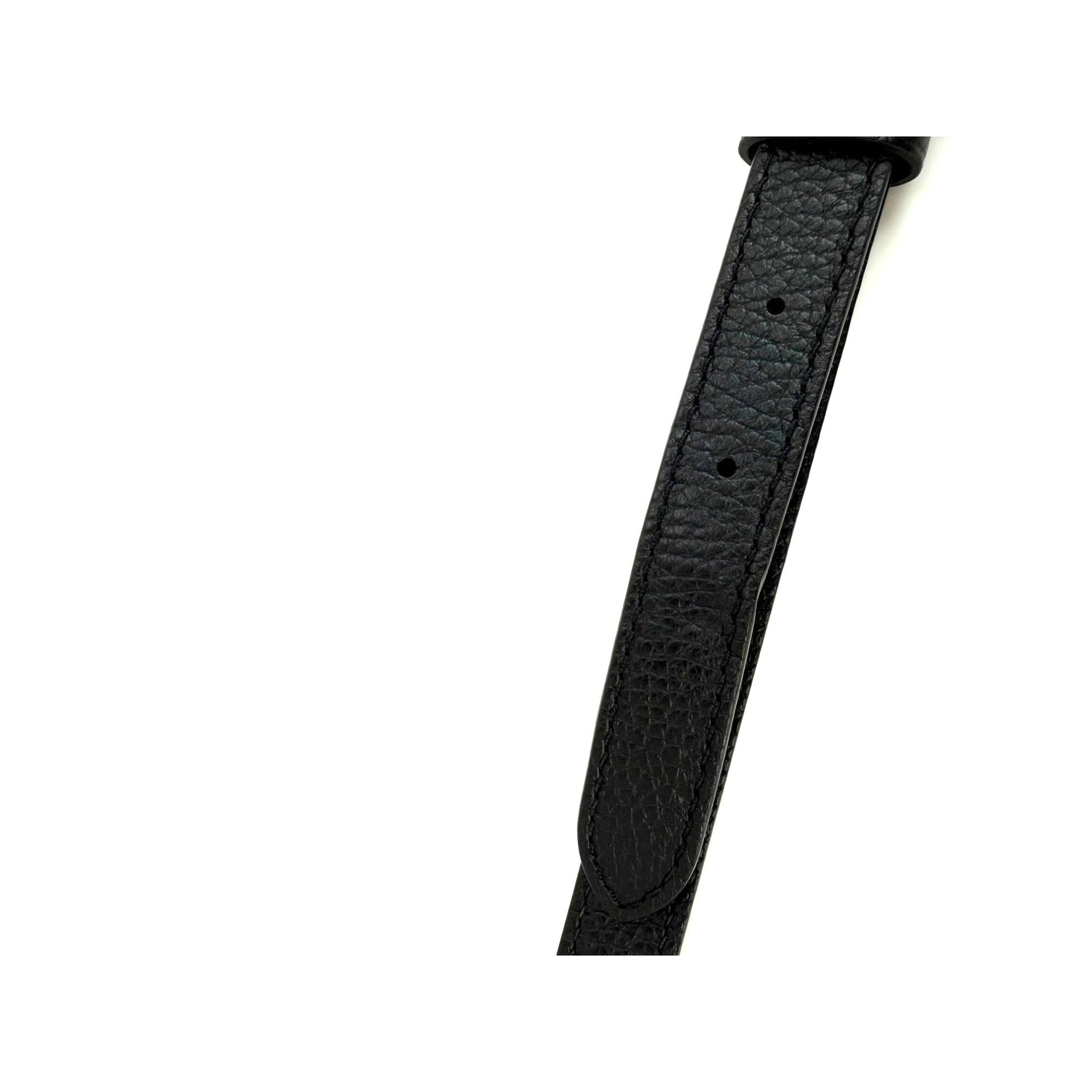 SANGLE : Sangle amovible réglable en cuir noir LV de 44'' à 48'', avec une petite courbure près de l'extrémité
