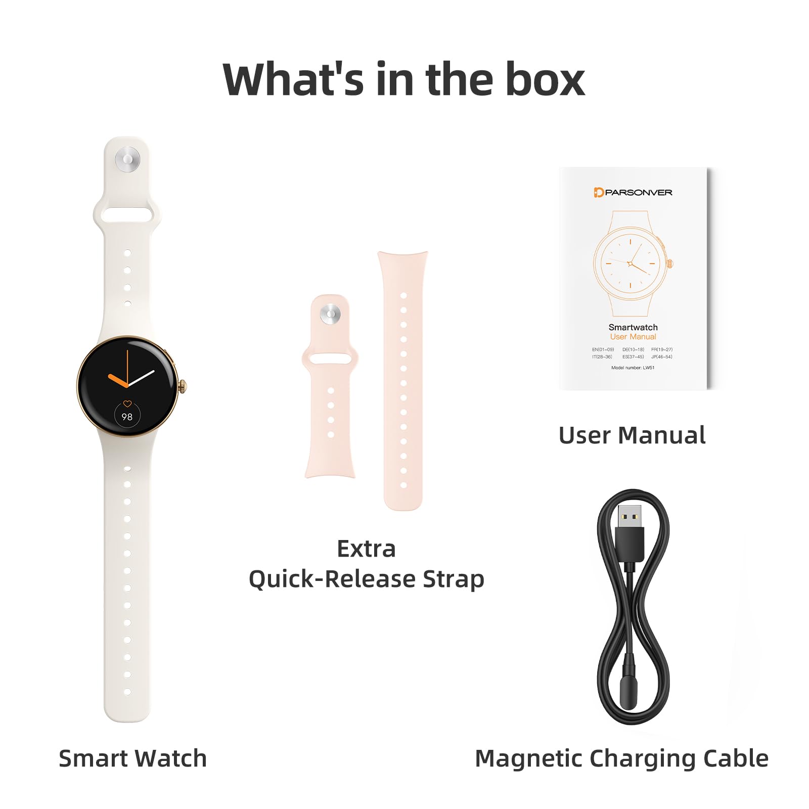 Conception : 1,32" AMOLED (466×466), batterie de 5 à 7 jours, double sangle.