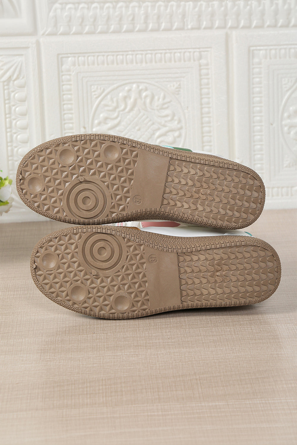 Step out with confidence in the Pink Striped Patchwork Lace Up Sneakers and enjoy a casual, polished look wherever your day takes you.