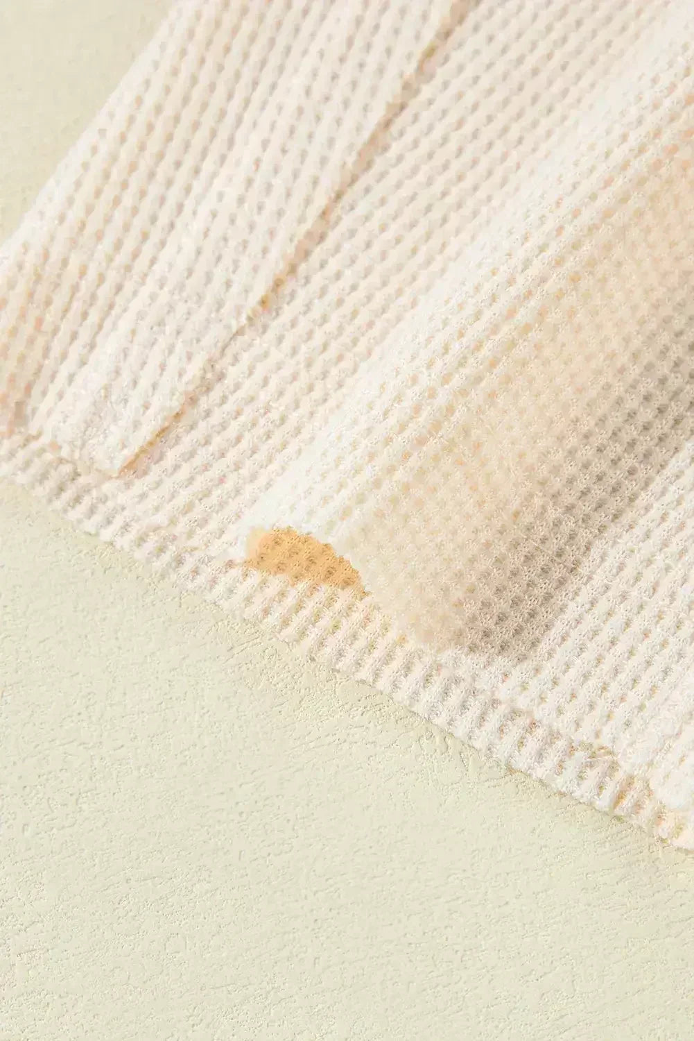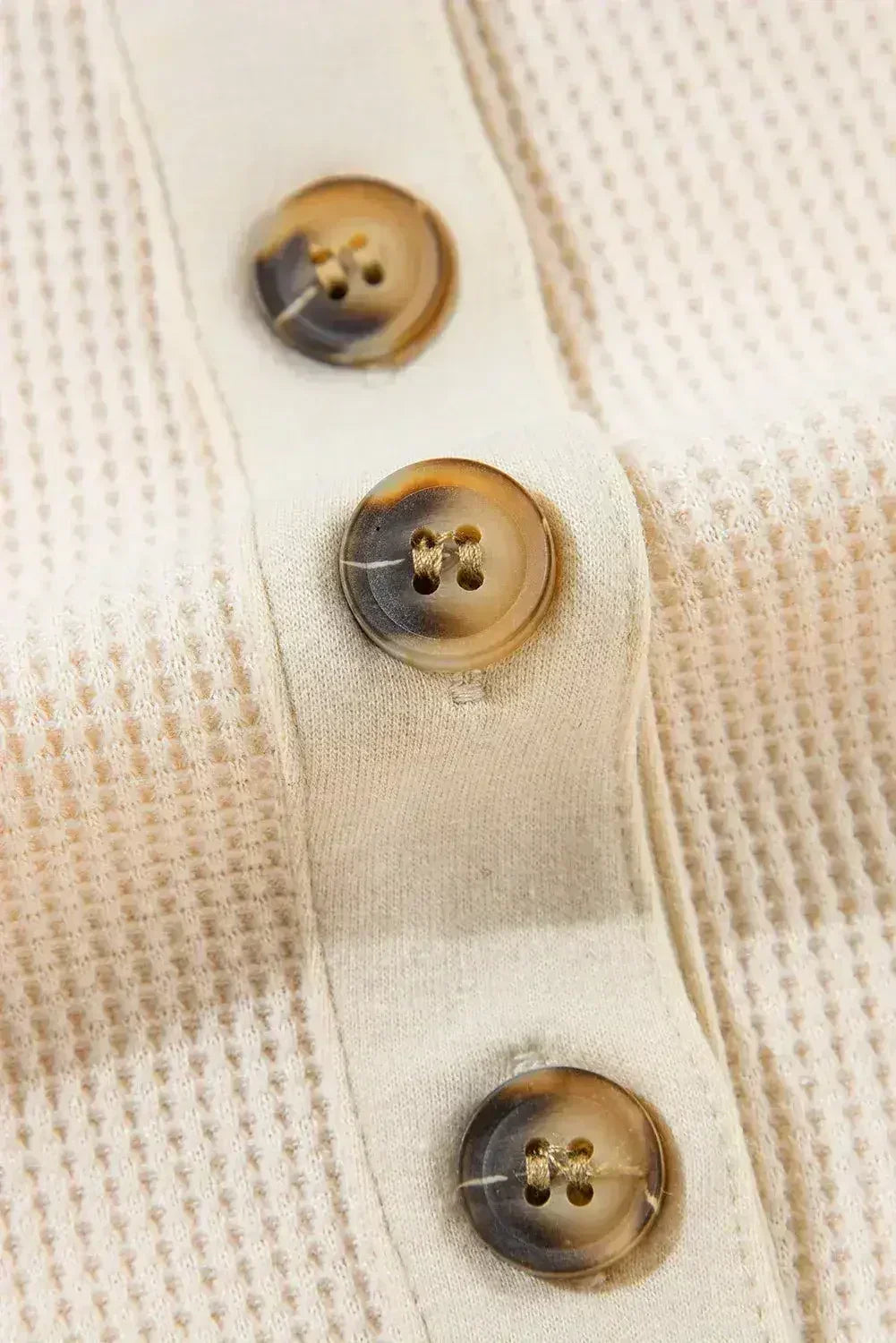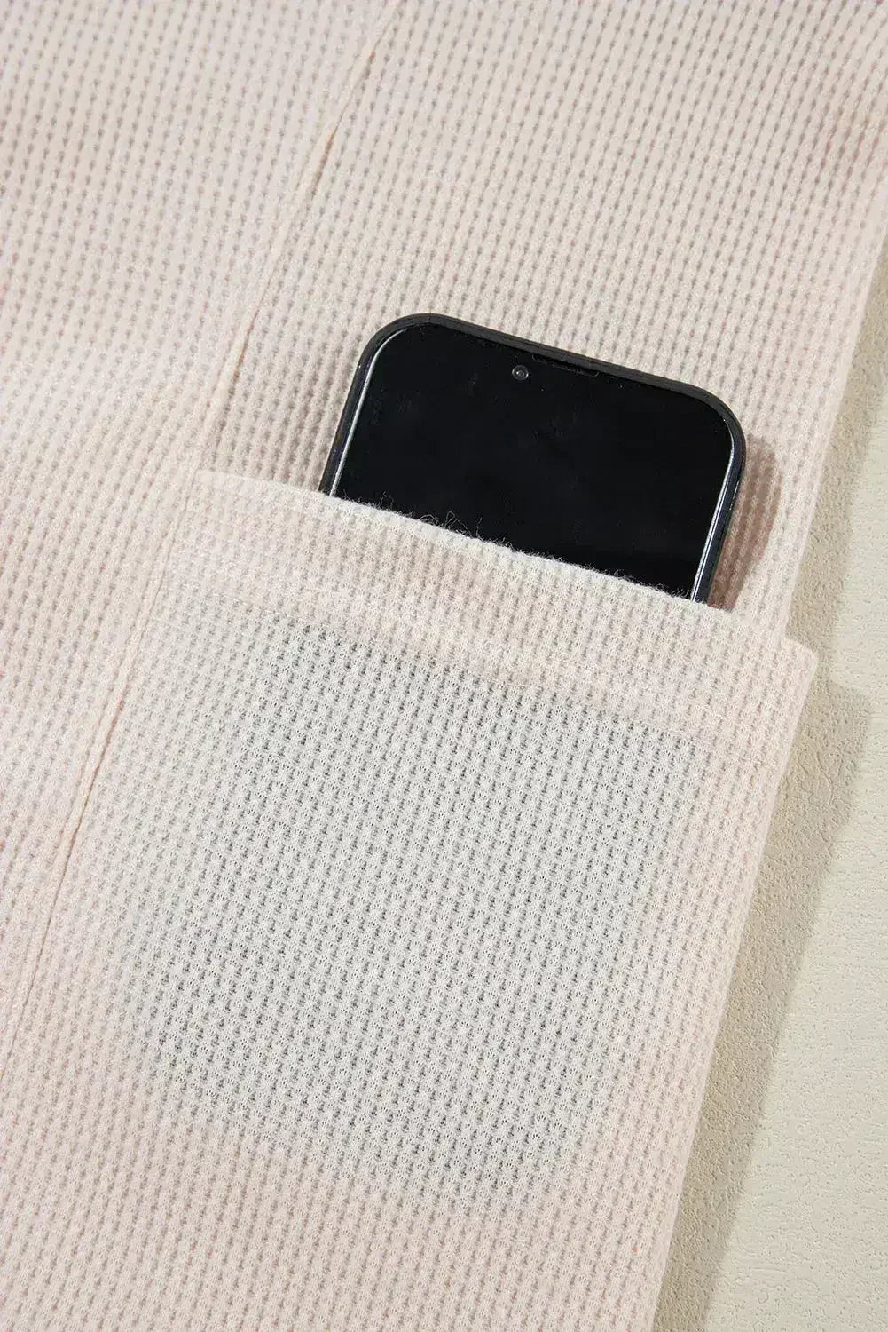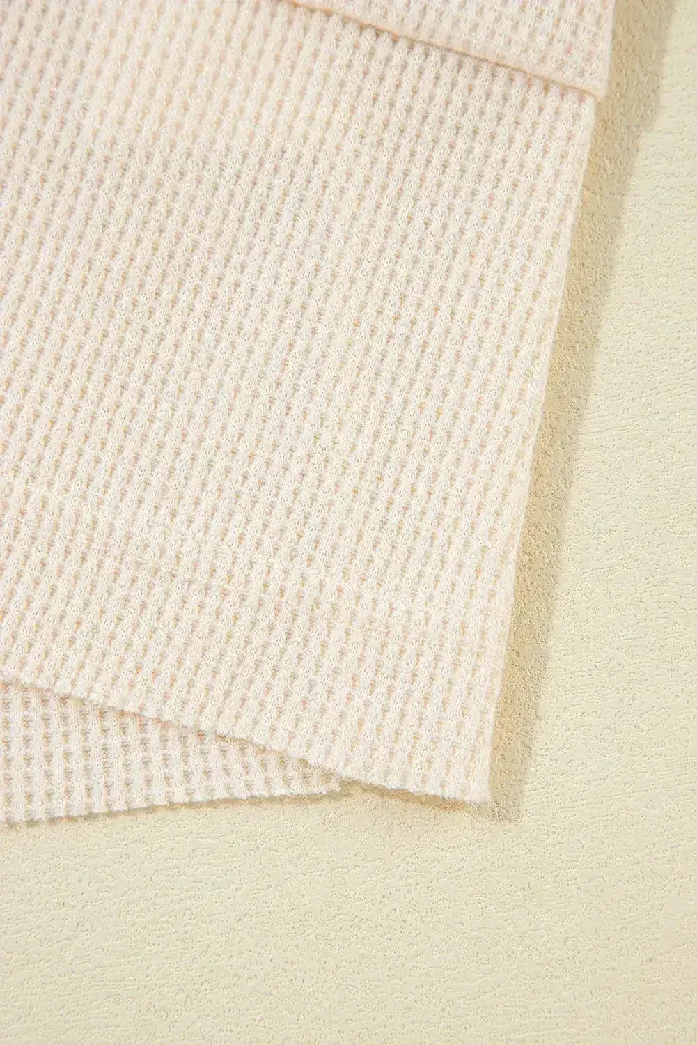 Pink Waffle Long Sleeve Collared Half Button Relaxed Fit Top