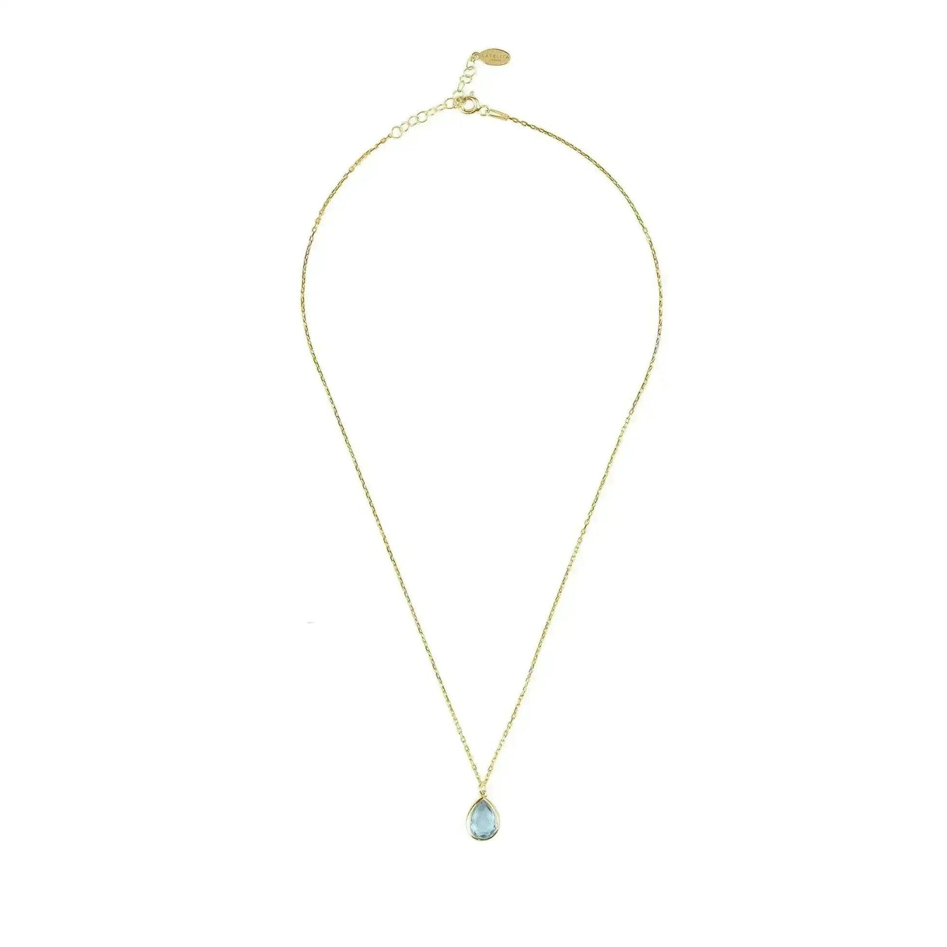 Pisa Mini Teardrop Necklace Gold Blue Topaz
