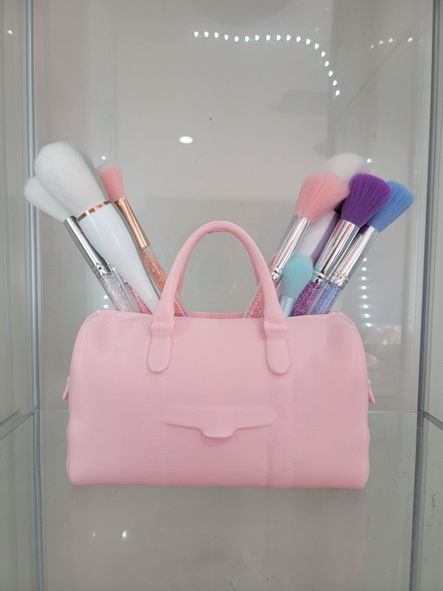 ✨ Organize your vanity in style with this 3D-printed pink duffel bag-shaped brush holder! Featuring a cute handbag design, this brush holder not only keeps your brushes neat but adds a chic vibe to your beauty space. Perfect for makeup lovers who appreciate fashion and function in one! 💅💄