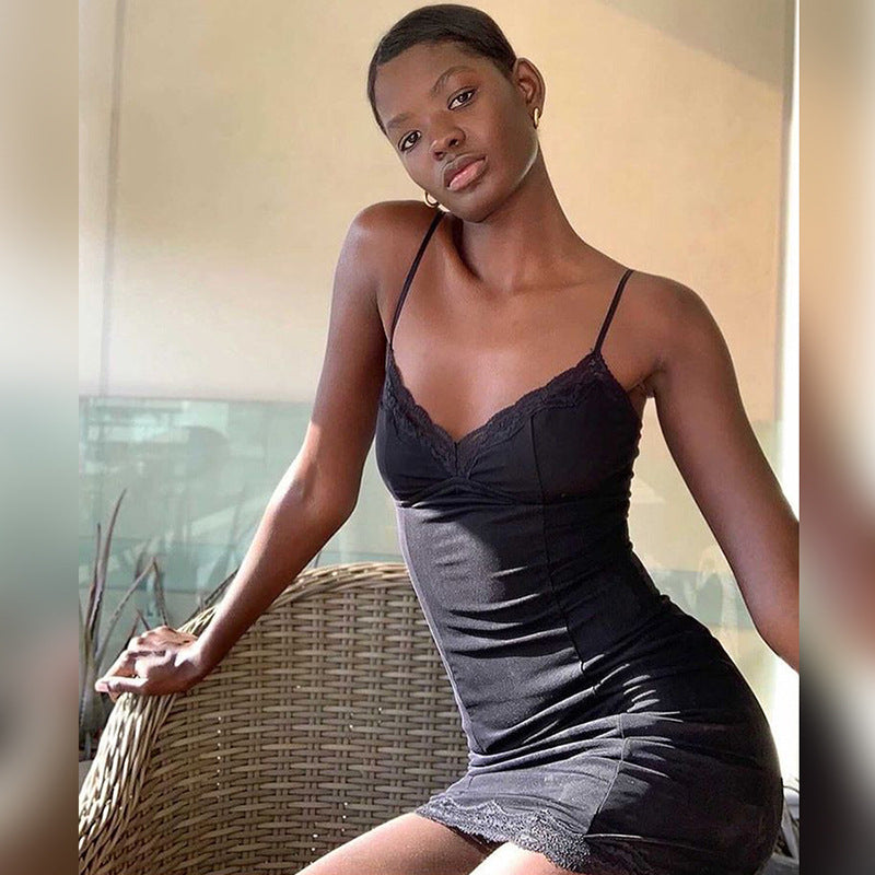 Summer Trends Women Clothing Sling Lace Edge Sheath Slim Slimming Dress