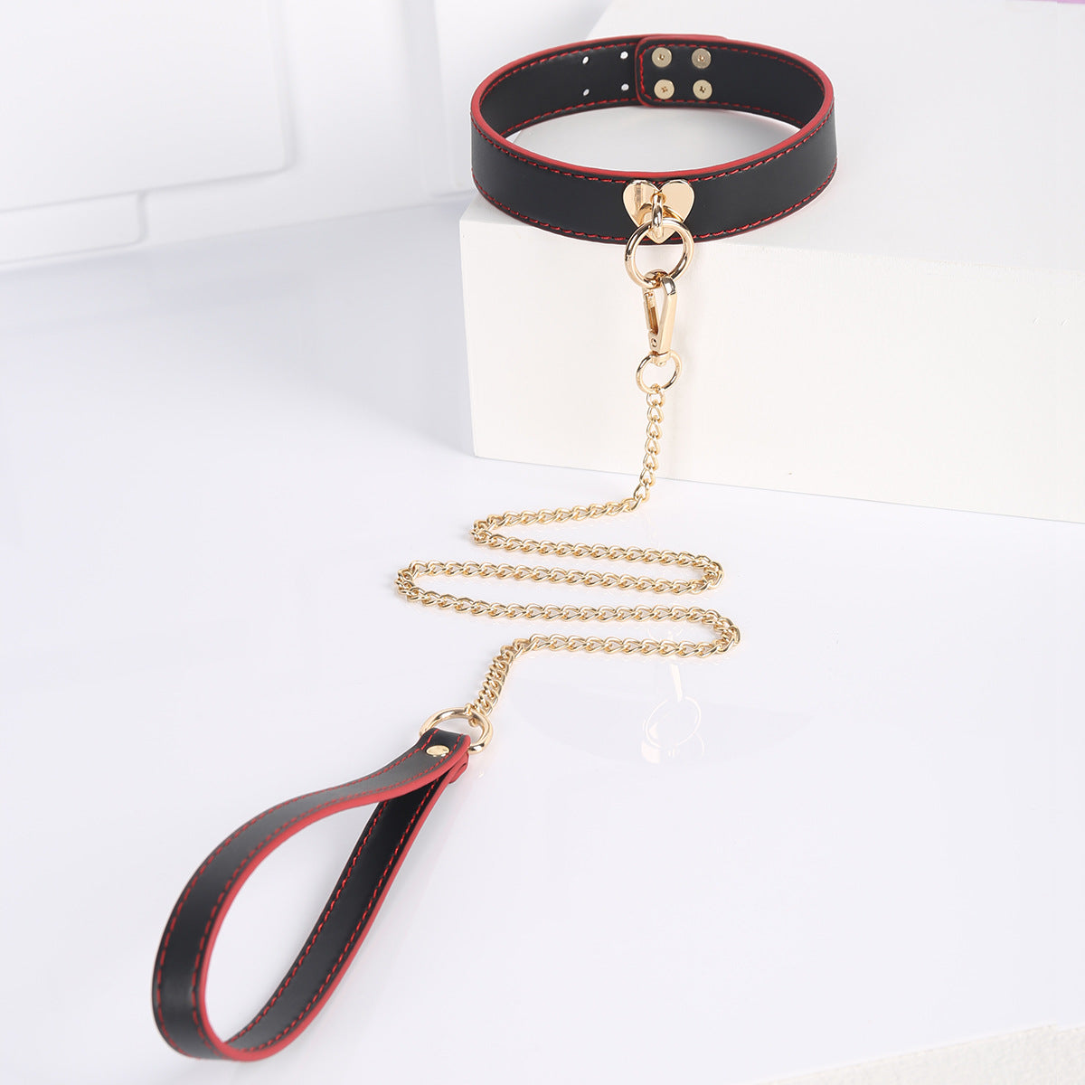 - PU Leather Collar with Metal Chain Leash: This collar, made of soft yet durable PU leather, features an elegant, adjustable design that comfortably fits around the neck. Attached is a sleek metal chain leash, perfect for adding an extra layer of control and submission to your play. The metal leash allows for graceful, yet assertive movements, adding to the power dynamic.