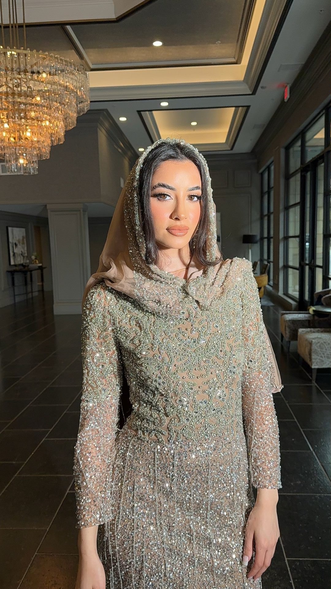 The Aleya embellished headscarf is the perfect accessory to the Aleya Dress, with a lined scarf and beaded trim that will add a touch of elegance and modesty to your look. Make a statement with this high-end and exclusive piece.