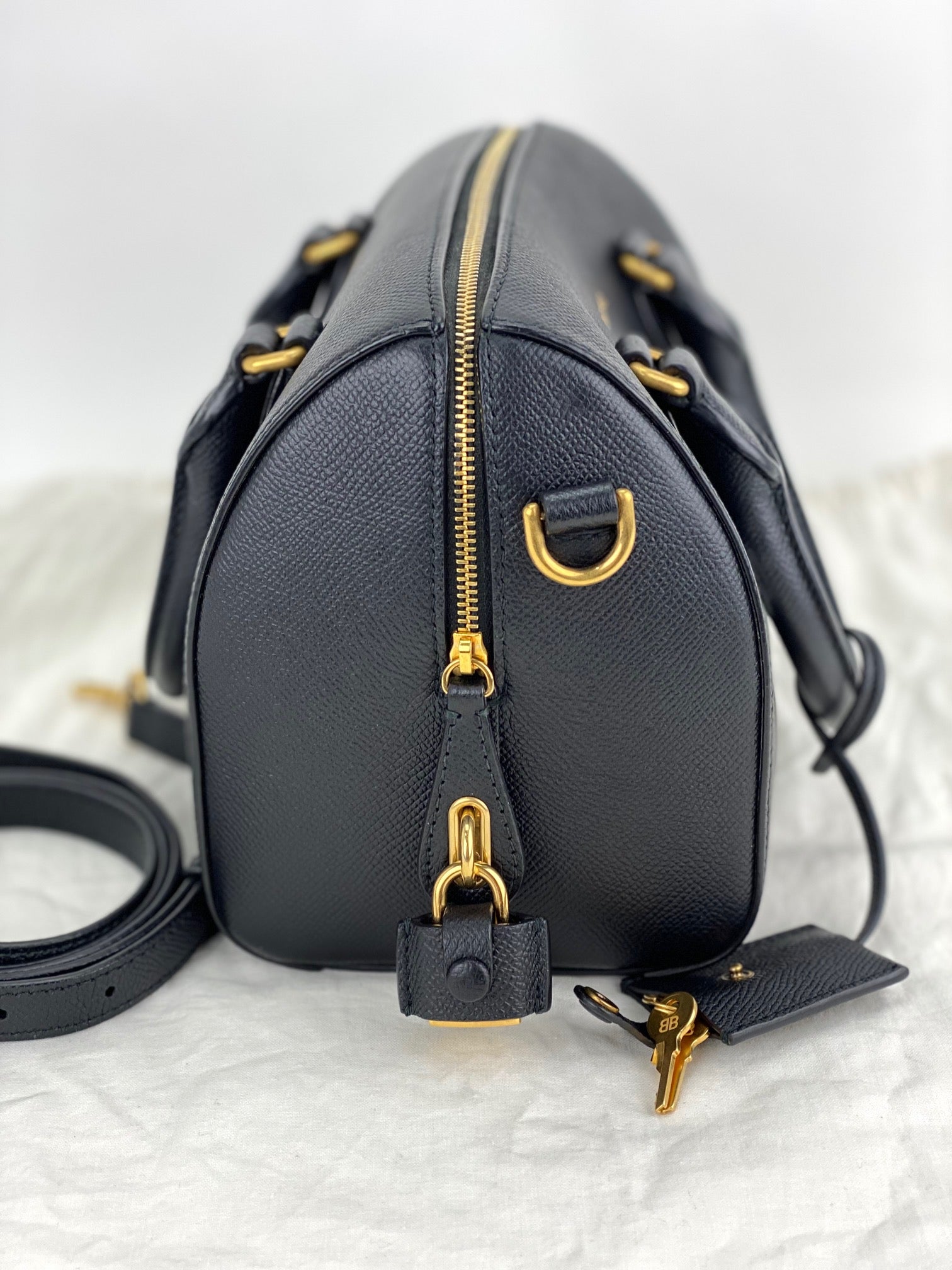Balenciaga Ville Bowling Small Black Grained Leather Satchel Crossbody Bag