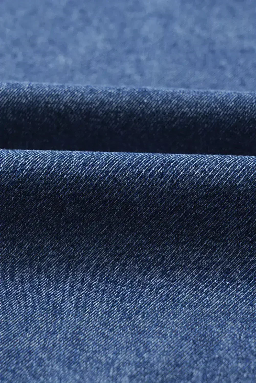 Beau Blue Short Sleeve Collared Chest Pocket Denim Mini Dress