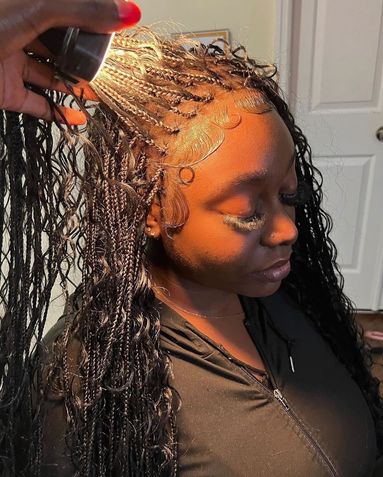 This Ready To Ship glueless bohemian knotless braided wig resembles a natural scalp and is crafted with human hair up to 8-12 inches, a stretchable Swiss full lace cap, and a high-quality blend of hair fiber for added length. It includes 3-4 combs, an adjustable rubber band, baby hair, and a snap hook for secure installation. The hair root and color are both 1B, the length extends to the waist, and it weighs approximately 50-60 grams. With proper maintenance, this wig can last for 2-3 years. Research indicates that prolonged braiding of natural hair or using harsh shampoo can lead to long-term alopecia, baldness, and discomfort. However, with a poshglad braided wig, you can avoid these concerns. Simply put on your wig and go about your day with confidence - no one will be able to tell it's a wig.