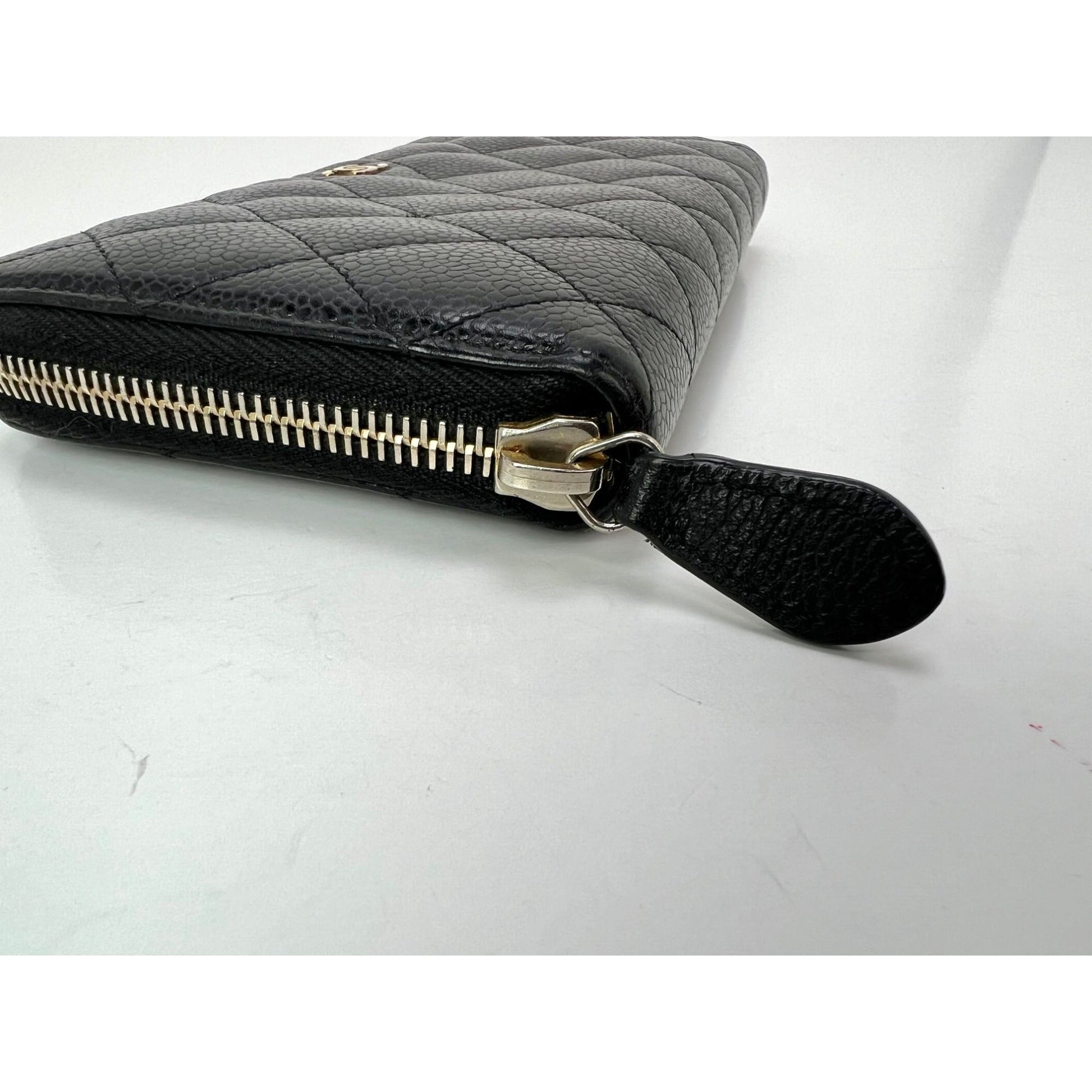 Chanel Caviar Quilted Large Gusset Zip Around Black Wallet
