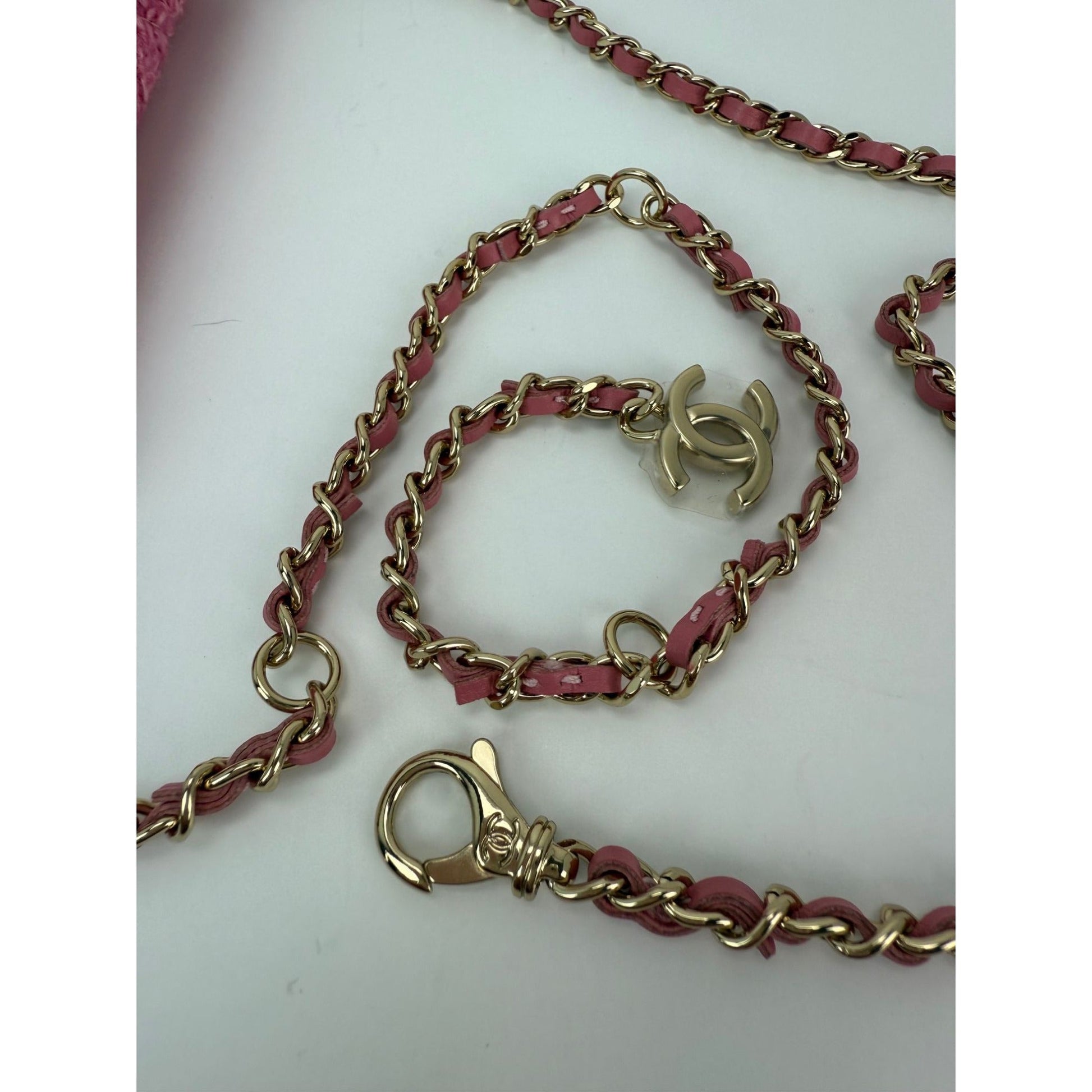 Chanel Tweed Quilted Mini Flap Pink Chain Waist Shoulder Bag