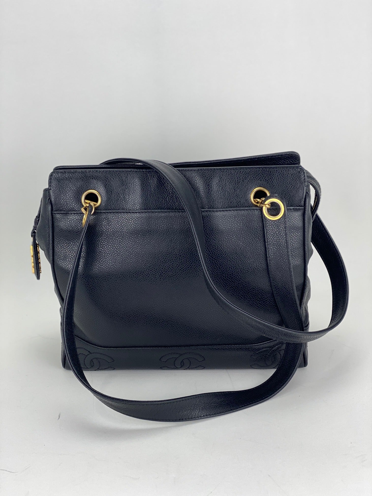 CHANEL Vintage Black Caviar Leather CC Zip Tote Shoulder Bag w/added insert Pre owned