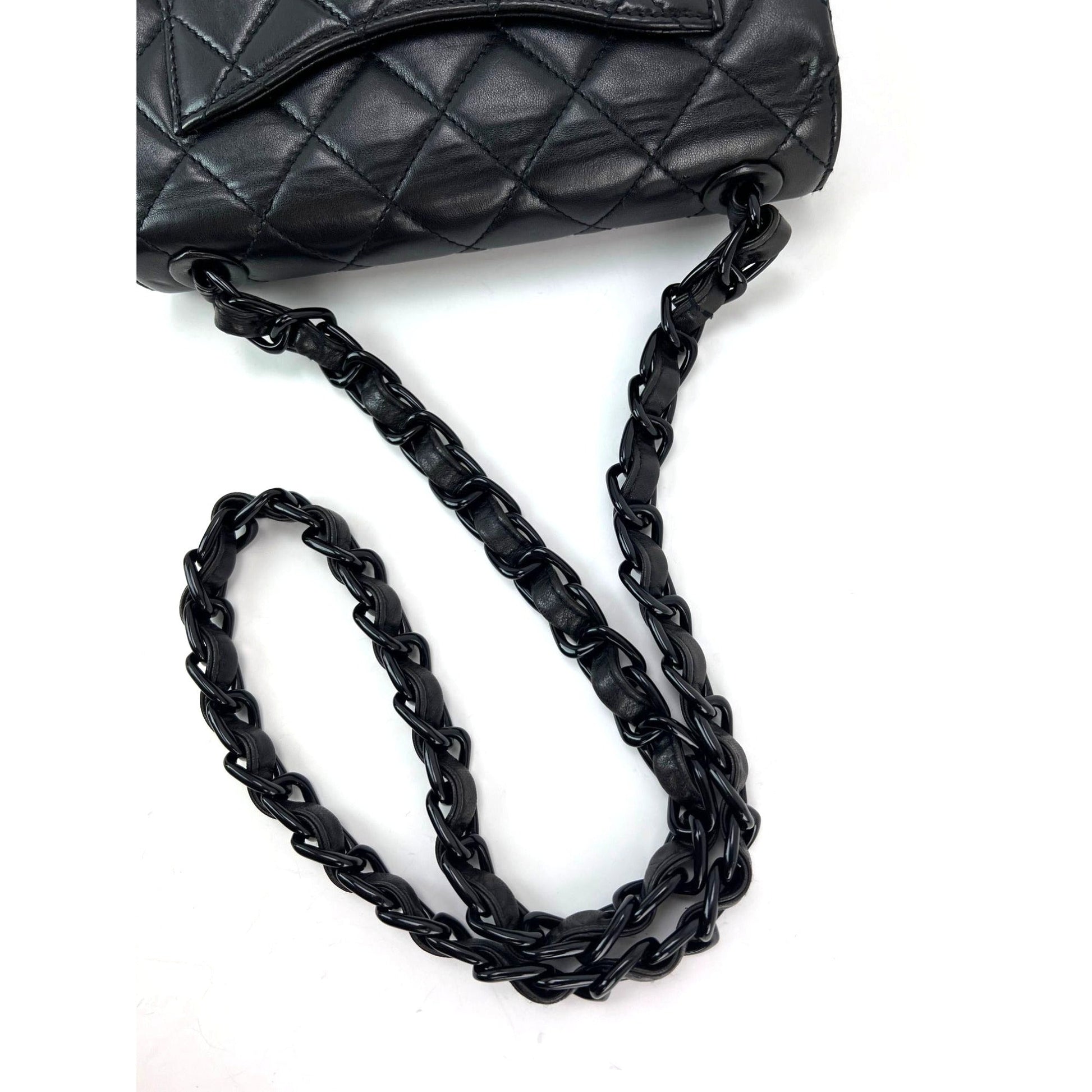 Chanel Vintage Quilted Lambskin Black Resin Chain Small Classic Single Flap Bag RARE