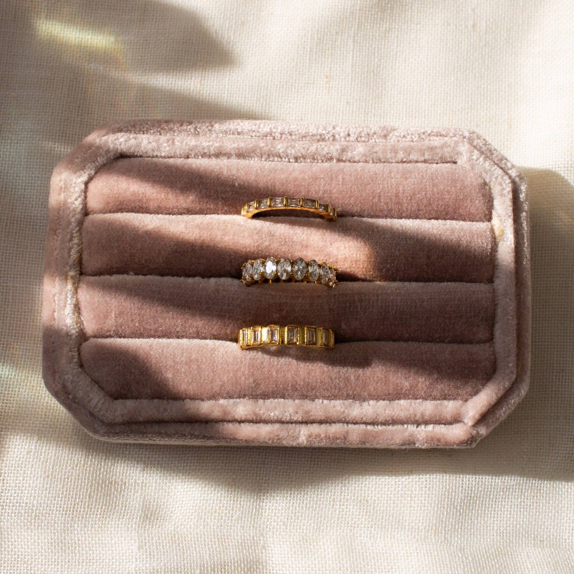 Bring on the brilliance with the Diana Baguette Ring! Featuring dazzling baguette-cut cubic zirconia stones set side by side on the front of a sleek band, this ring adds a touch of glamour to your everyday look. Whether you’re stacking it with other rings or wearing it solo, the Diana Ring is all about understated sparkle with a modern edge.
