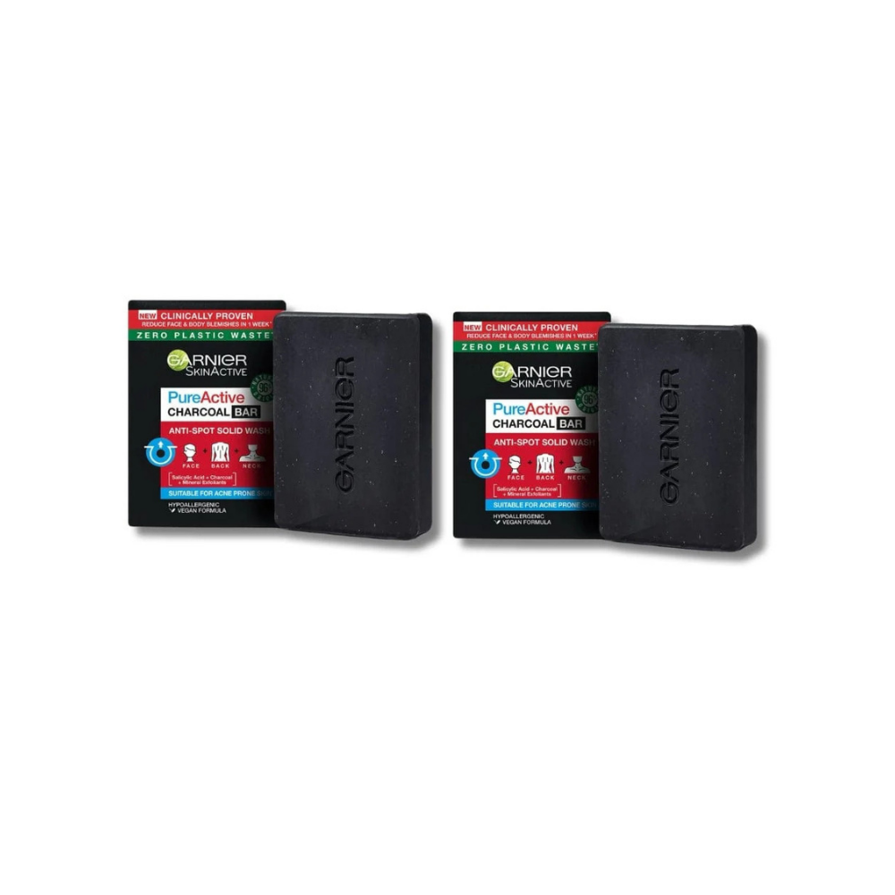 Garnier Pure Active Anti-Spot and Blackhead Solid Wash Charcoal Bar 100g 2 Pack