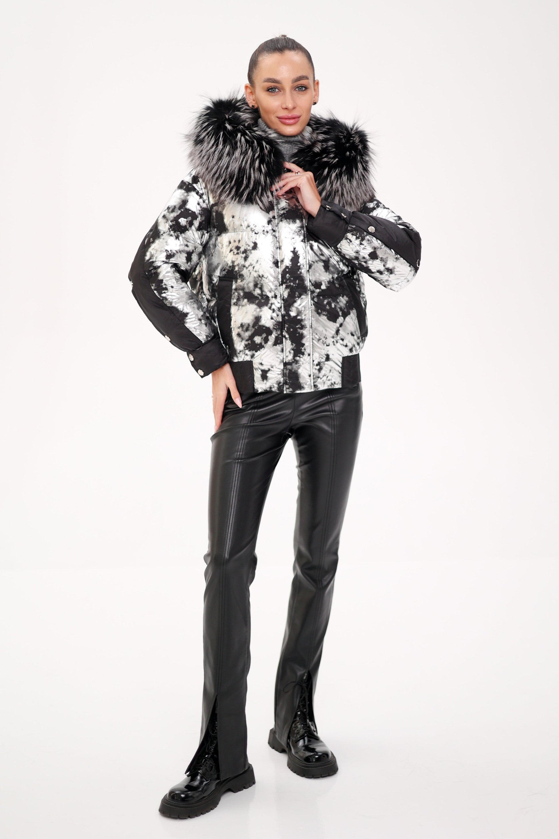 Wrap yourself in the ultimate luxury and winter style with the Glacier Luxe Down Puffer. This eye-catching coat features a bold foil-like metallic print that mimics the dazzling beauty of winter landscapes, ensuring you stand out in any setting. Filled with premium down insulation for exceptional warmth, it’s designed to keep you comfortable in the coldest temperatures. The real Silver fox fur trim adds an opulent touch, giving this jacket an unmatched level of elegance and sophistication.