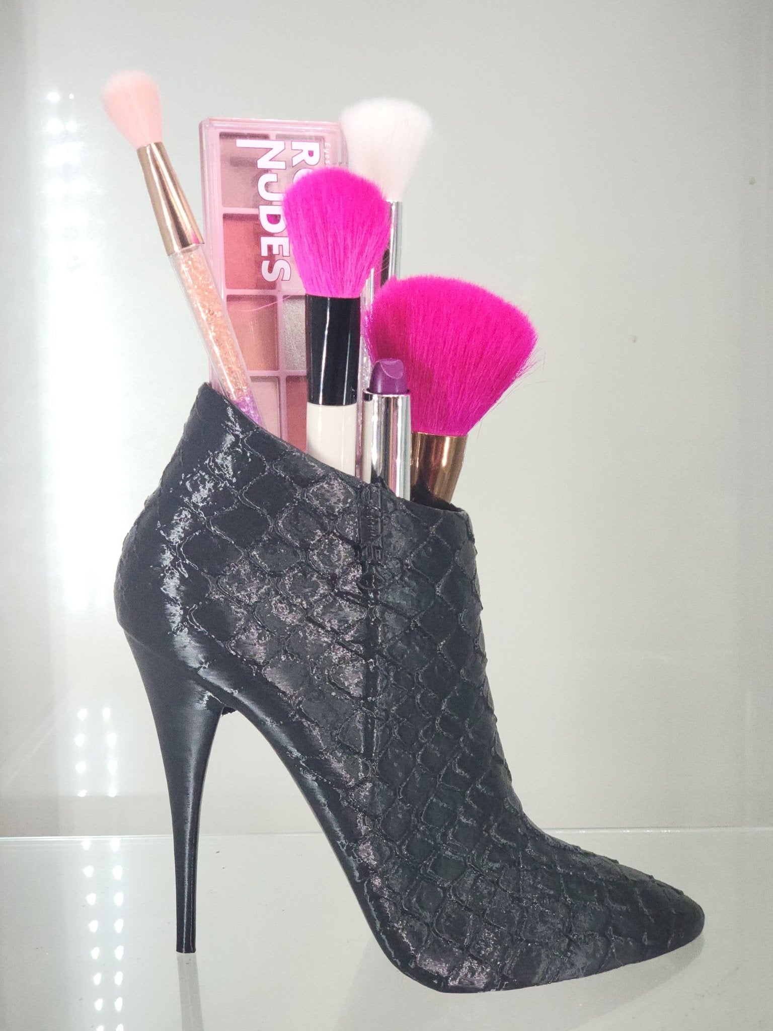 Elevate your vanity with this chic 7” tall 3D-printed high heel brush holder! 👠✨ Perfect for organizing brushes, lipsticks, or small palettes while adding a touch of glam to your space. Crafted from durable PLA material, it's lightweight and elegant. A must-have for fashion and beauty lovers!