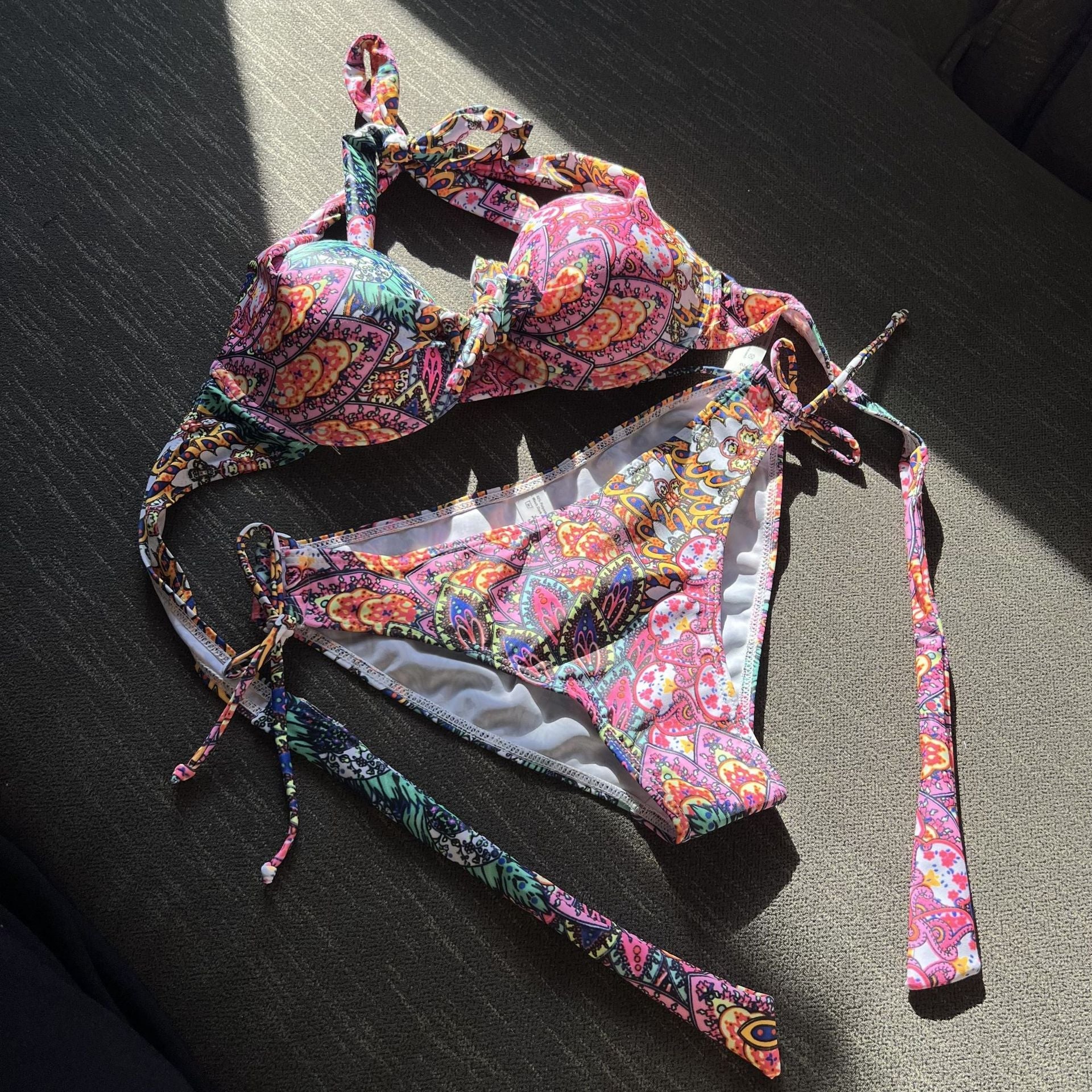 Hard Cup Floral Totem Strap Split Swimsuit Bikini Bikini
