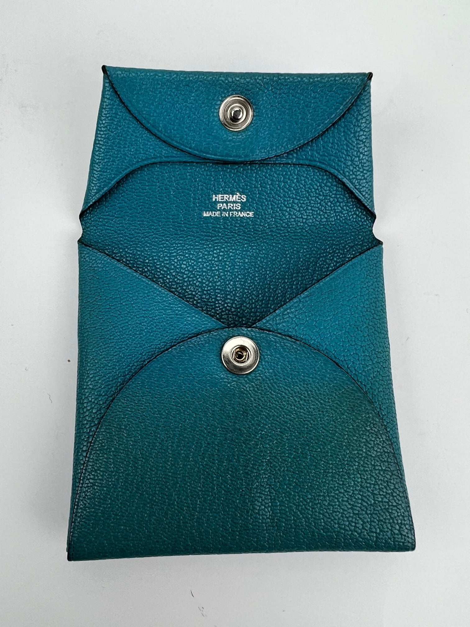 Hermès Chevre Mysore Bastia Verso Teal Blue Coin Purse