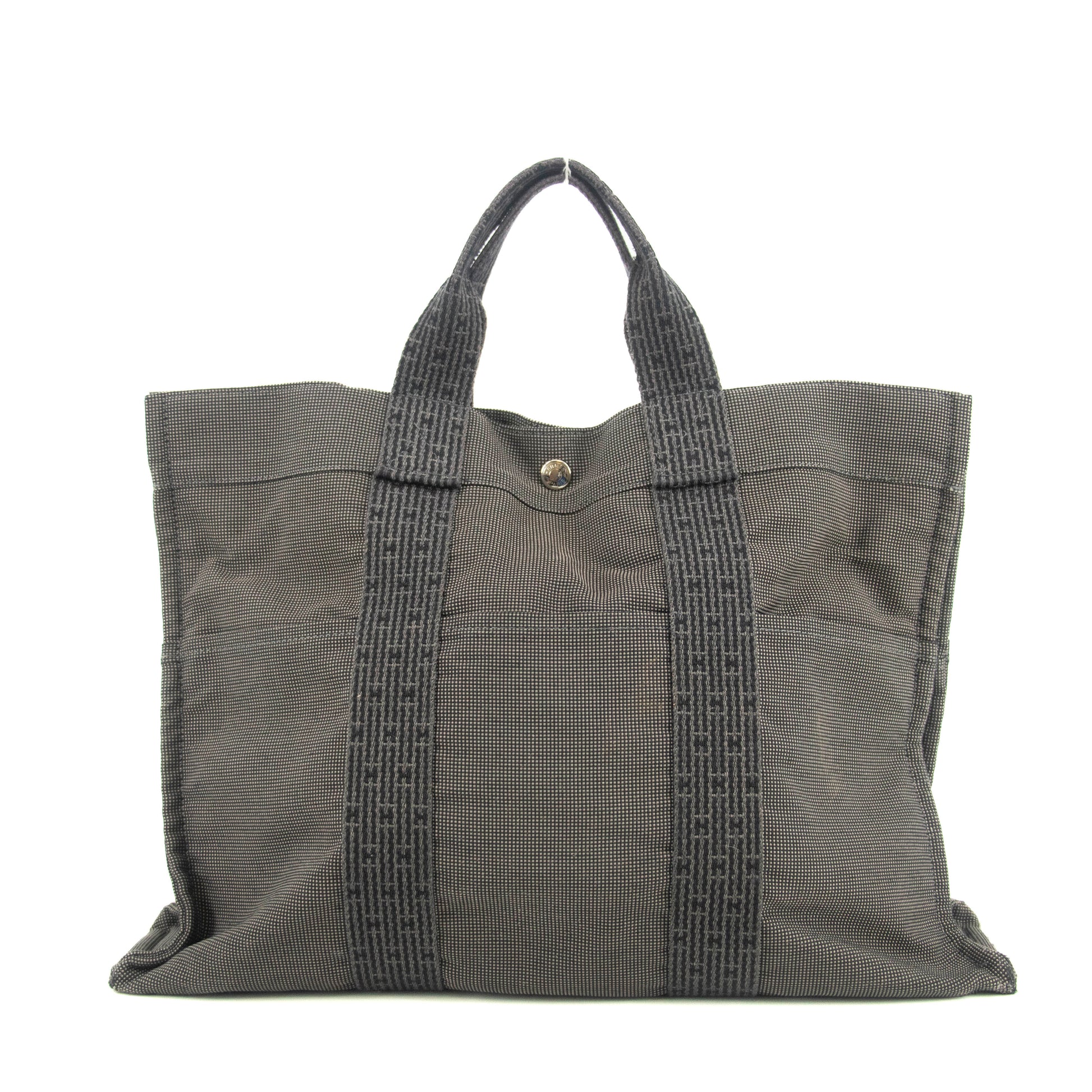 Hermes Herline MM Grey Canvas Tote Bag #4781