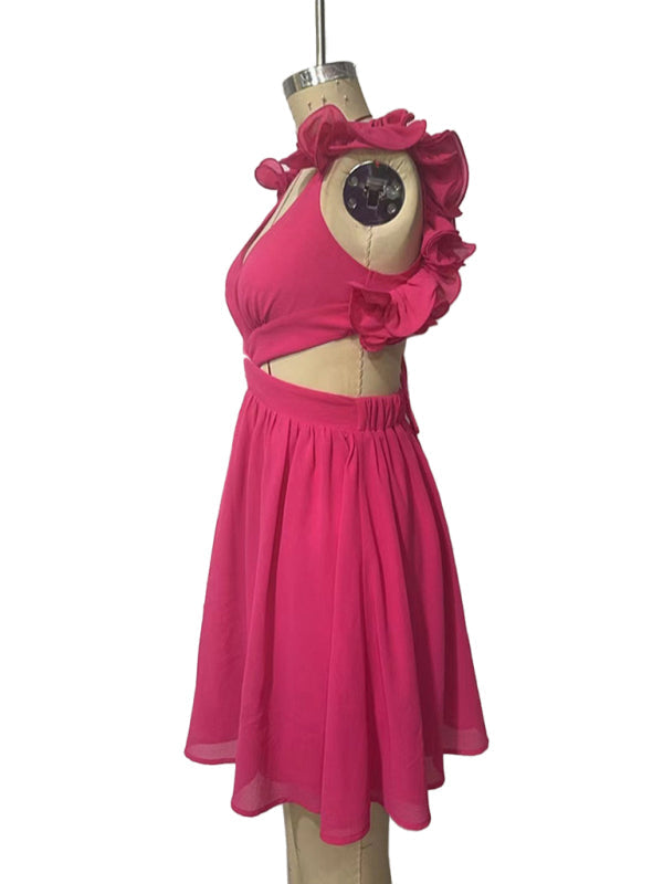 Hollow lace halter back short dress