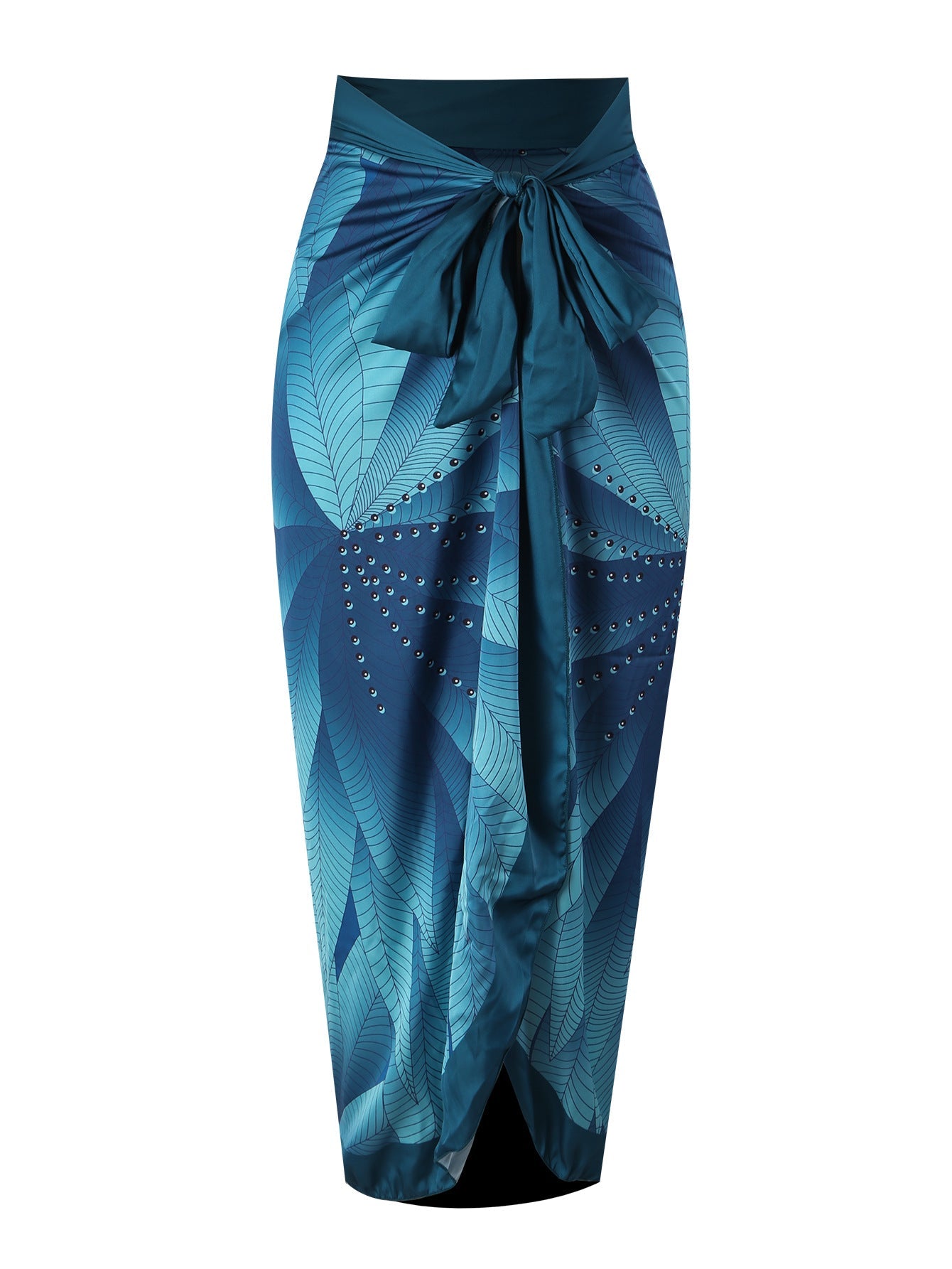 Lonkey French One Piece Two Piece Set Swimsuit Leaf Printed Sheath Dress Conservative Halter Swimsuit Women