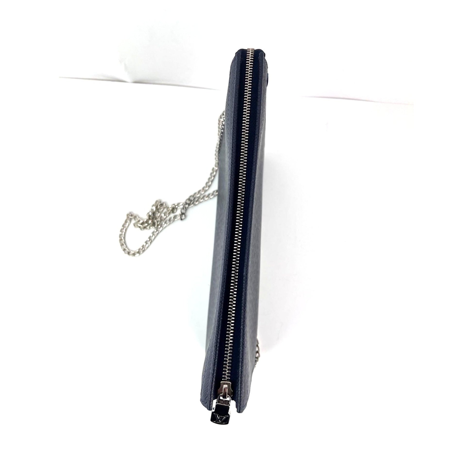 Louis Vuitton Pochette Voyage MM Taiga Dark Blue Leather Hand Bag Limited Edition
