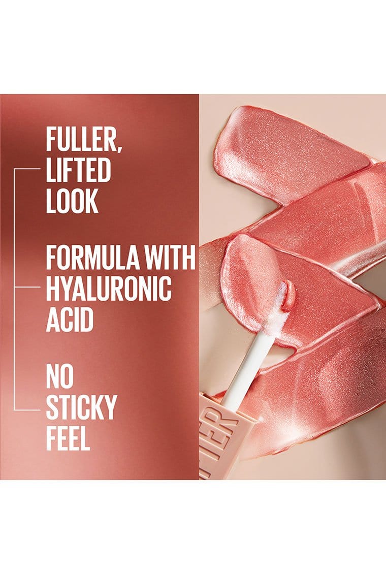 Maybelline New York’s next level lip gloss. Hydrated lips. Fuller look. This breakthrough formula with Hyaluronic Acid visibly smoothes lip surface and enhances lip contour with high shine for hydrated, fuller looking lips. Plus, its XL wand transforms lips in an easy, one swipe application. This hydrating lip gloss is available in a full range of modern shades, like Pearl, Ice, Amber, Bubblegum, Gummy Bear and more. Apply it for a hydrating, glossy shine and fuller look.
