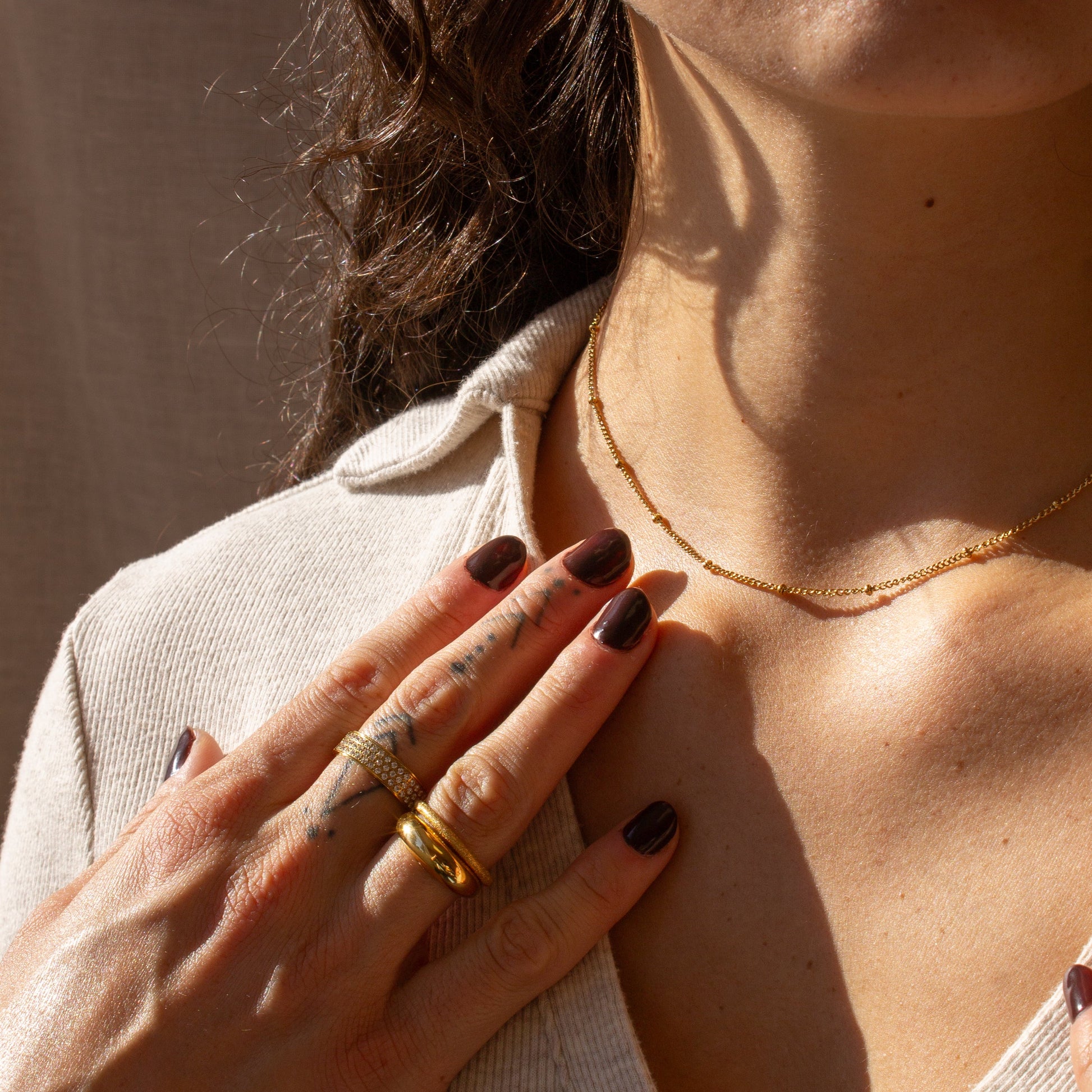 Crafted from premium 18k gold-plated surgical steel, the Mini Dome Ring is waterproof, tarnish-free, and hypoallergenic, making it as durable as it is stunning.