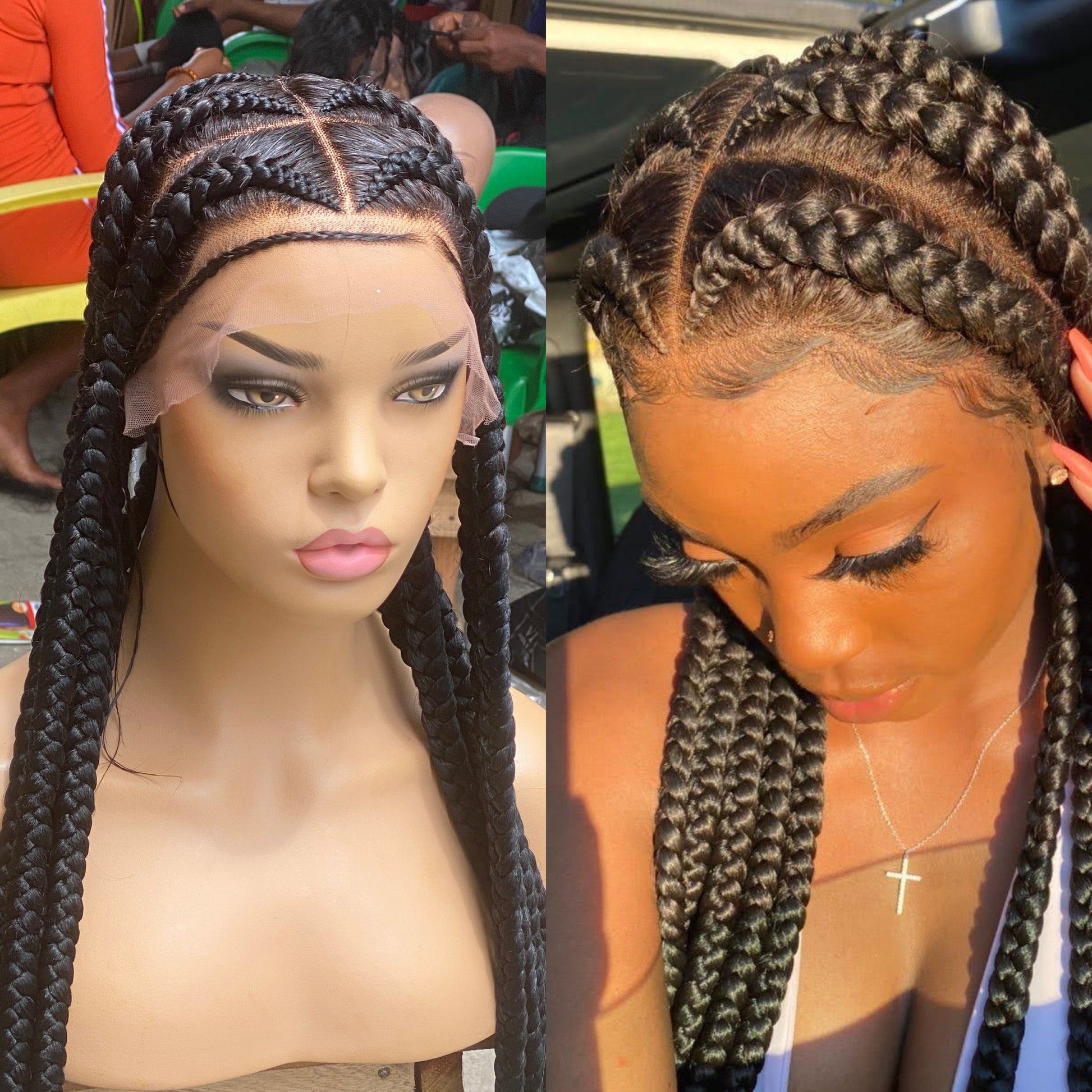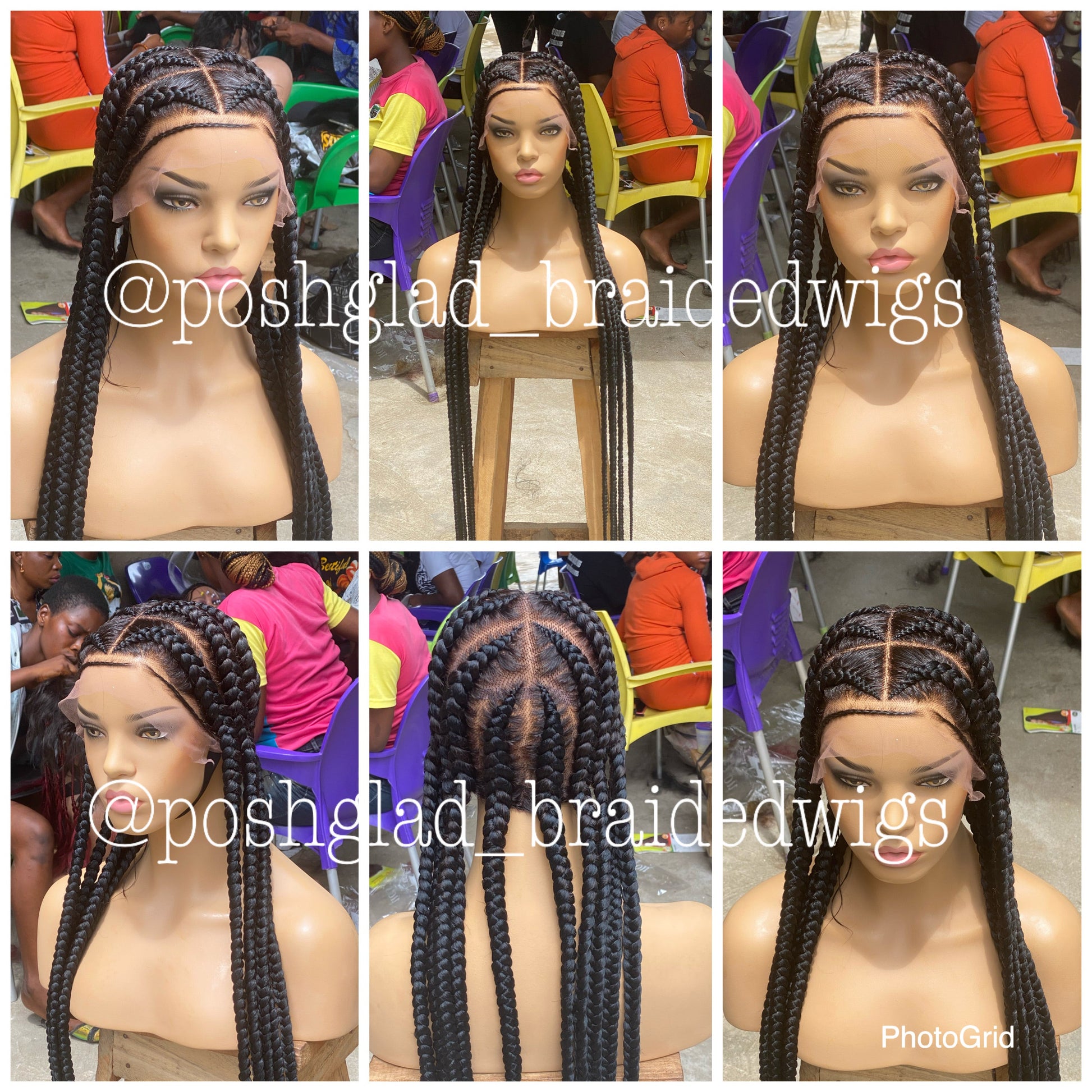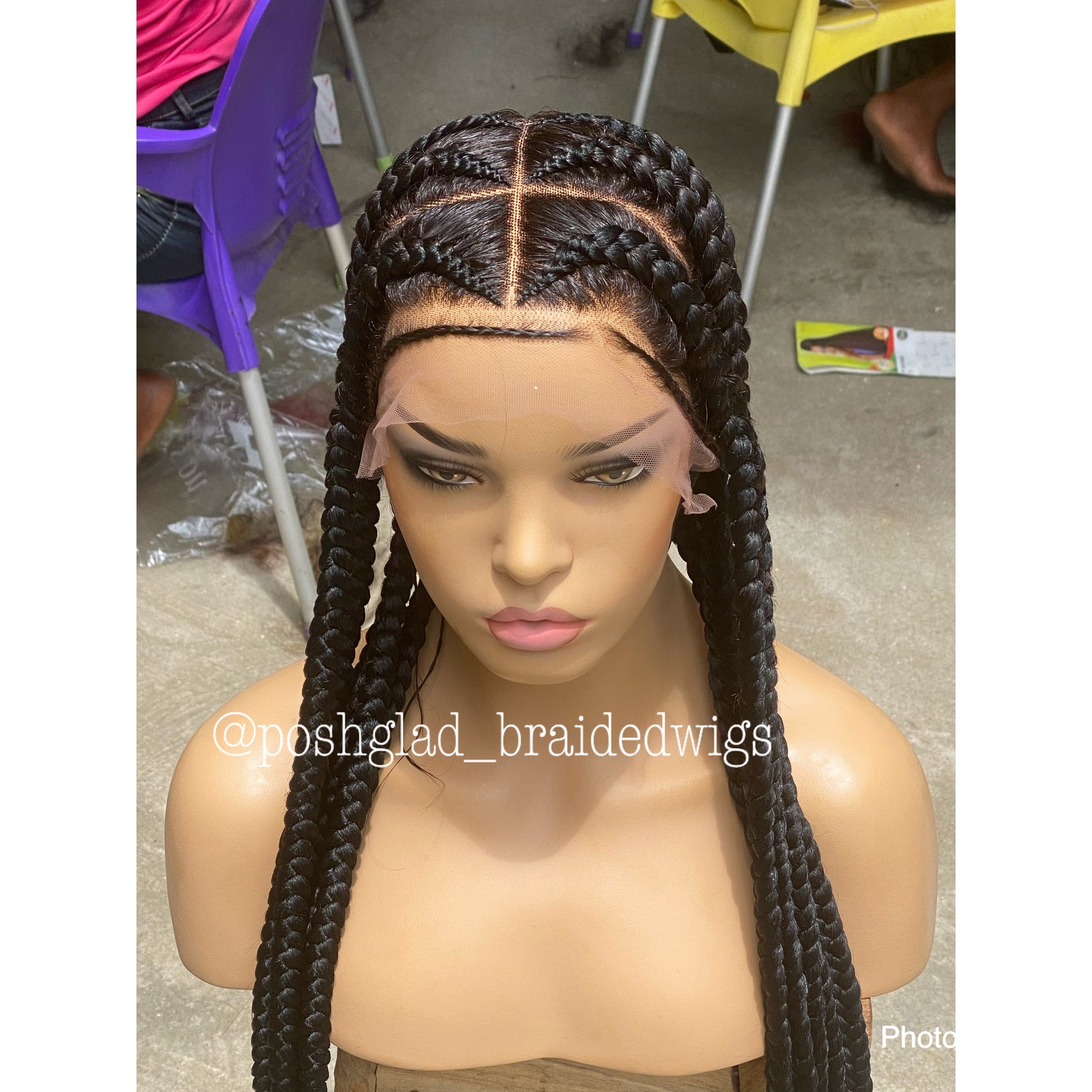 This scalp-looking glueless pop smoke wig has 100% human hair up to "8-12 in", a stretchable medium brown Swiss full lace cap, and a fine blend of quality kanekalon fiber for extra length. It has 3-4 combs inside, an adjustable rubber band, baby hair, and a snap hook for secured installation. The hair root color is black, the hair color is black, the length is waist length, and the weight is approximately 48-65 grams. It can last for up to 2-3 years if properly maintained. Studies show that braiding your natural hair or using harsh shampoo for an extended period causes long-term alopecia, baldness, and unbearable pain. With a poshglad braided wig, you don't have to worry about any of that. Just put your wig on and go—nobody will know it's a wig.