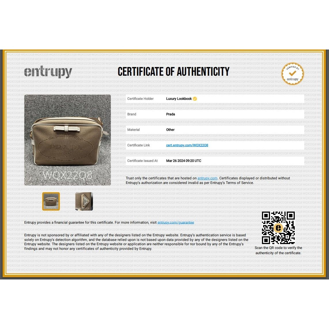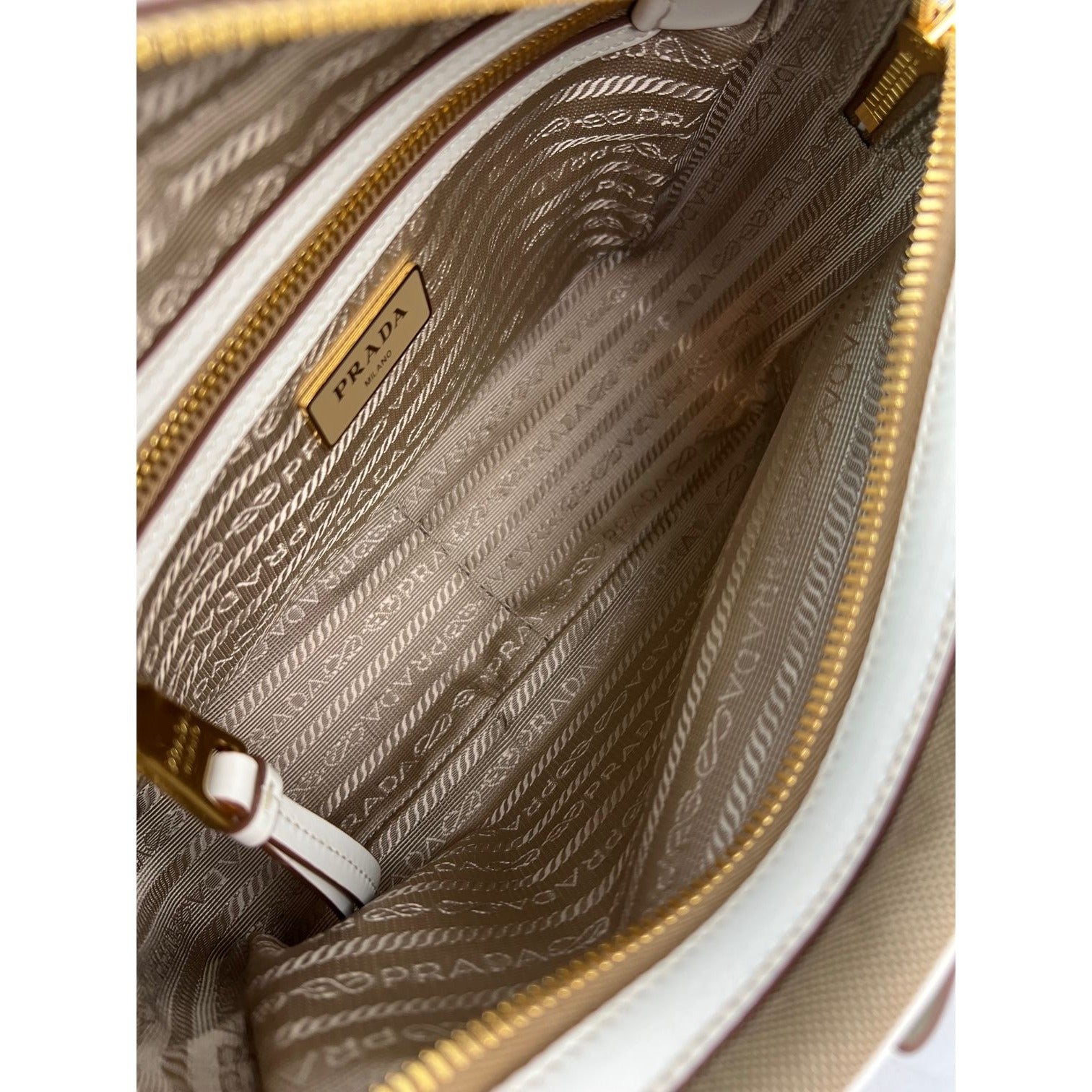 Pre-Owned 100% AuthenticPrada Khaki Canvas Camera Crossbody BagRATING: B...Very Good, well maintained, shows minor signs of wear MATERIAL: canvas, leather trim HANDLE: leather DROP: 19'' to 20.5'' COLOR: khaki, whiteCLOSURE: zipperEXTERIOR: excellent ODOR: no HARDWARE: goldenINTERIOR: beige canvas, cleanDATE CODE: 197 INCLUDED: *Prada Auth Card*Prada booklet and card MEASUREMENTS: H 6'' x L8.7 '' x W 3.2''Please see all pictures to determine final condition, pictures are of actual item ! SHIPPING: will ship same day or next day SKU C389 0624