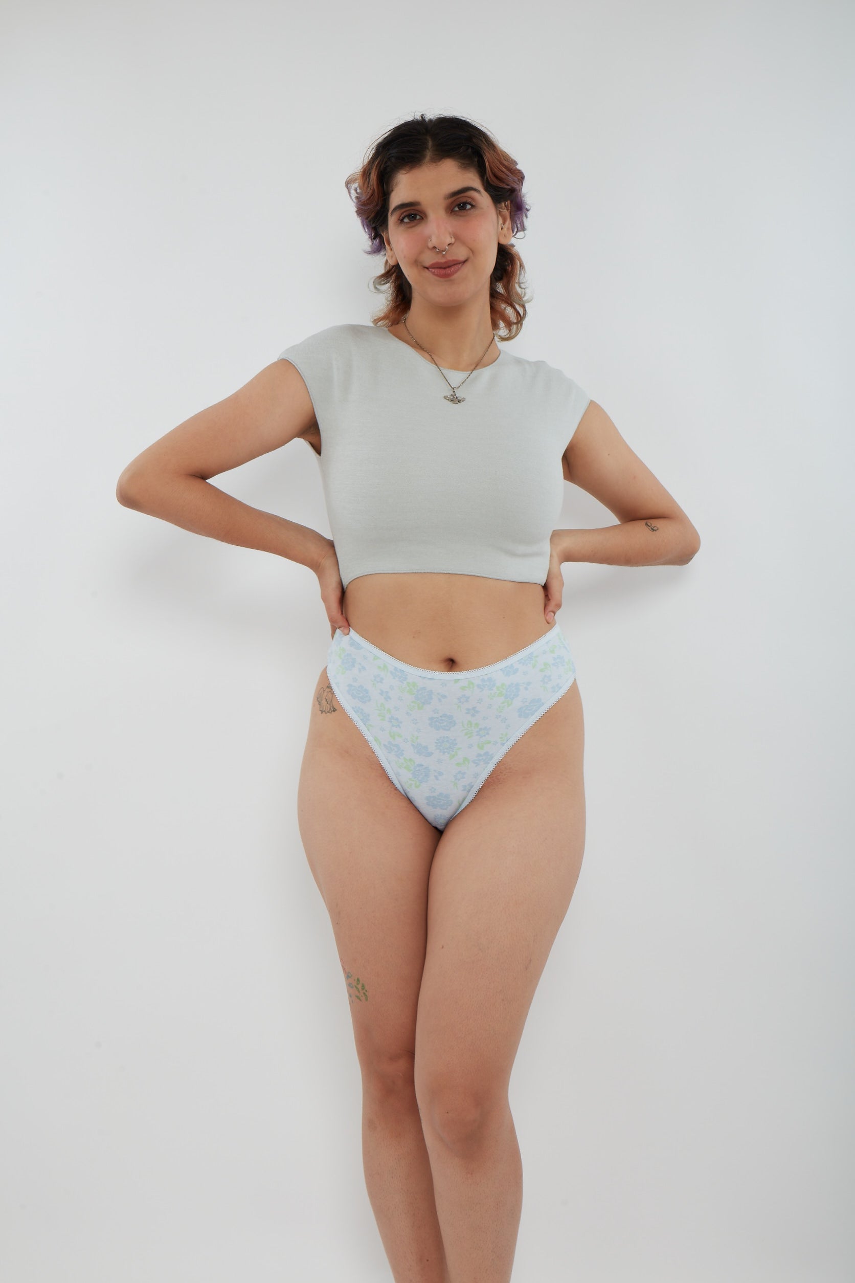 The Printed Cotton High Waist Bikini with Picot Trim combines everyday ease with a flattering, full-coverage cut.
