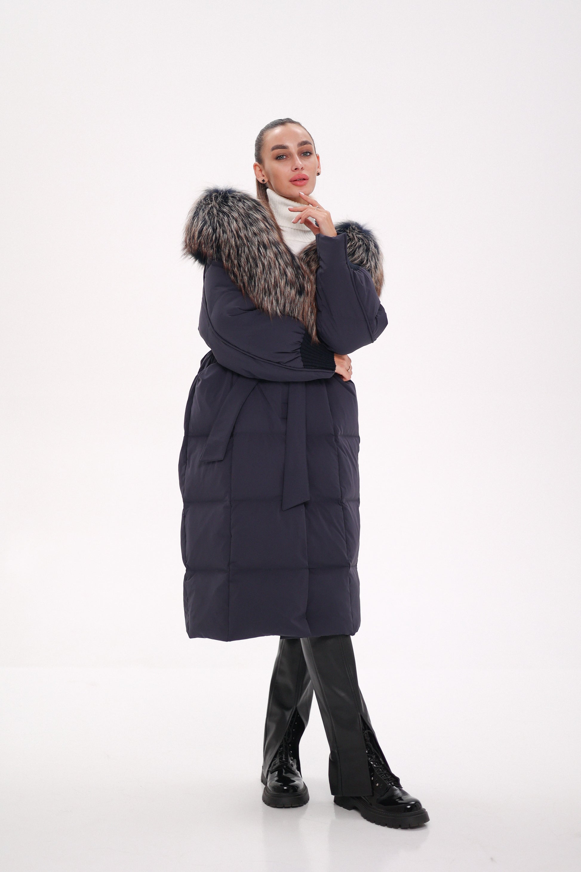 Rei Genuine Fur Trim Hooded Down Coat in Navy