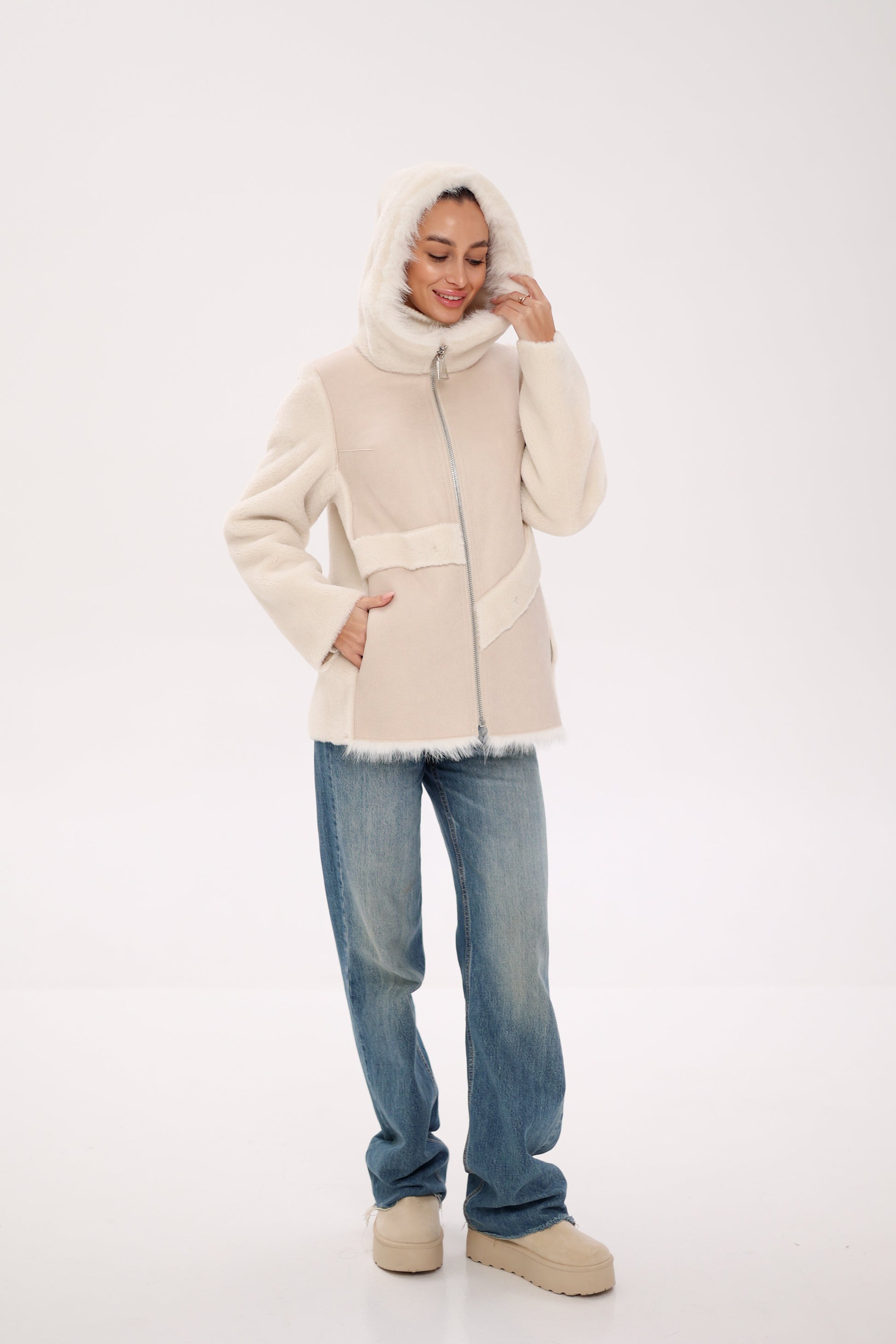 This hip-length reversible jacket combines eco-suede and wool blend, offering two looks in one. The eco-suede provides a sleek soft-to-the-touch finish, while the cozy layer of wool blend adds warmth and texture. With its versatile design, this jacket is perfect for transitioning between casual and sophisticated styles, making it a practical yet luxurious addition to any wardrobe.