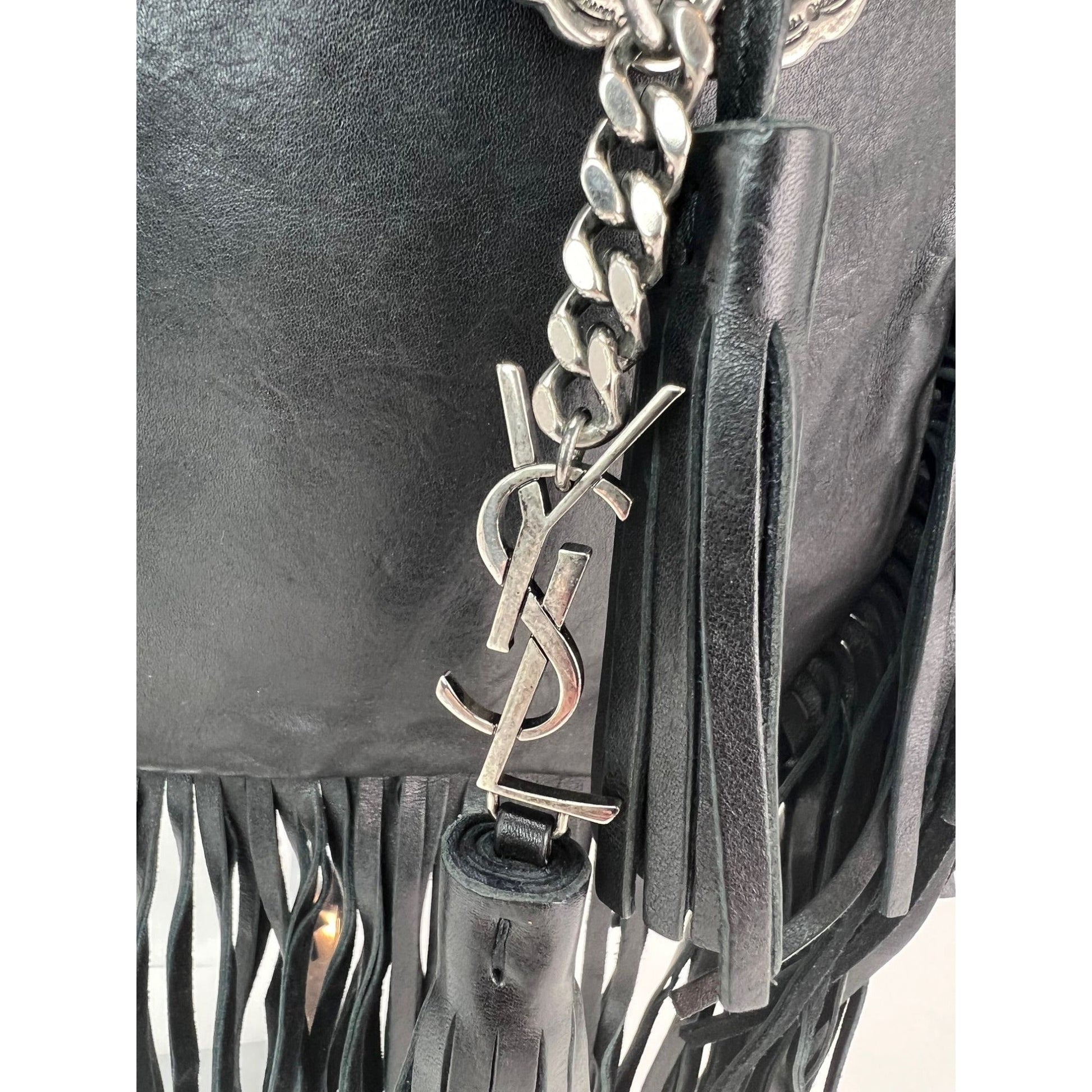 Saint Laurent Lambskin Anita Tassel Black Crossbody Bag