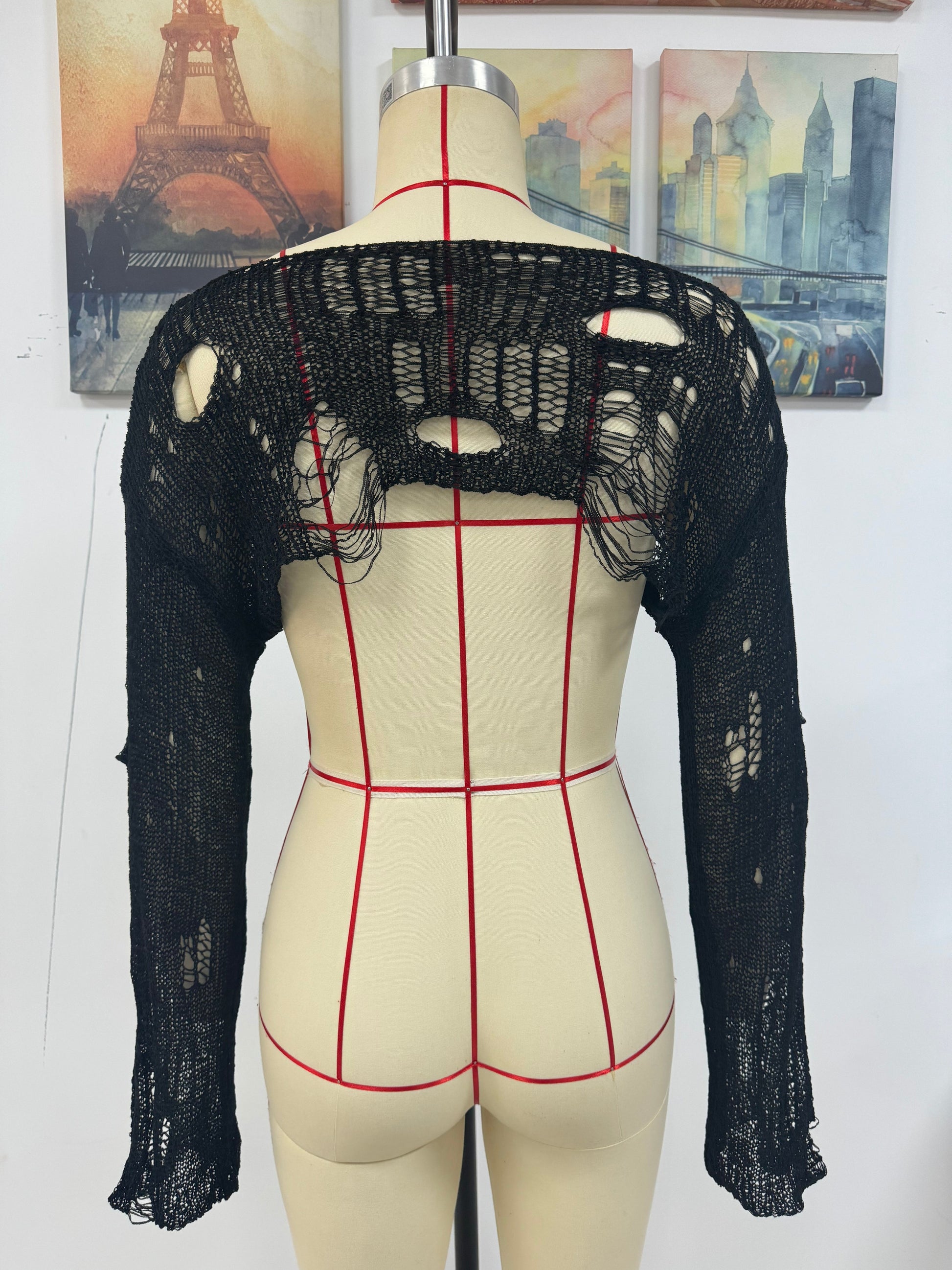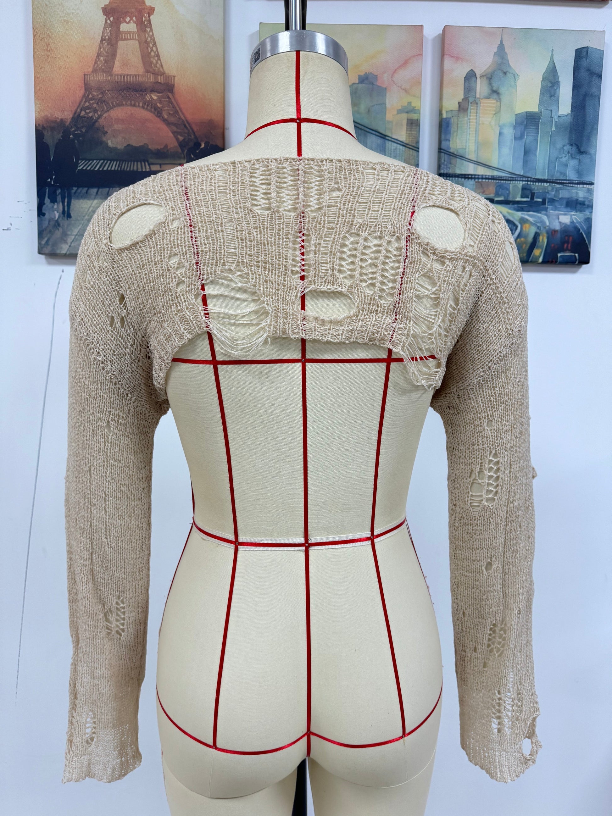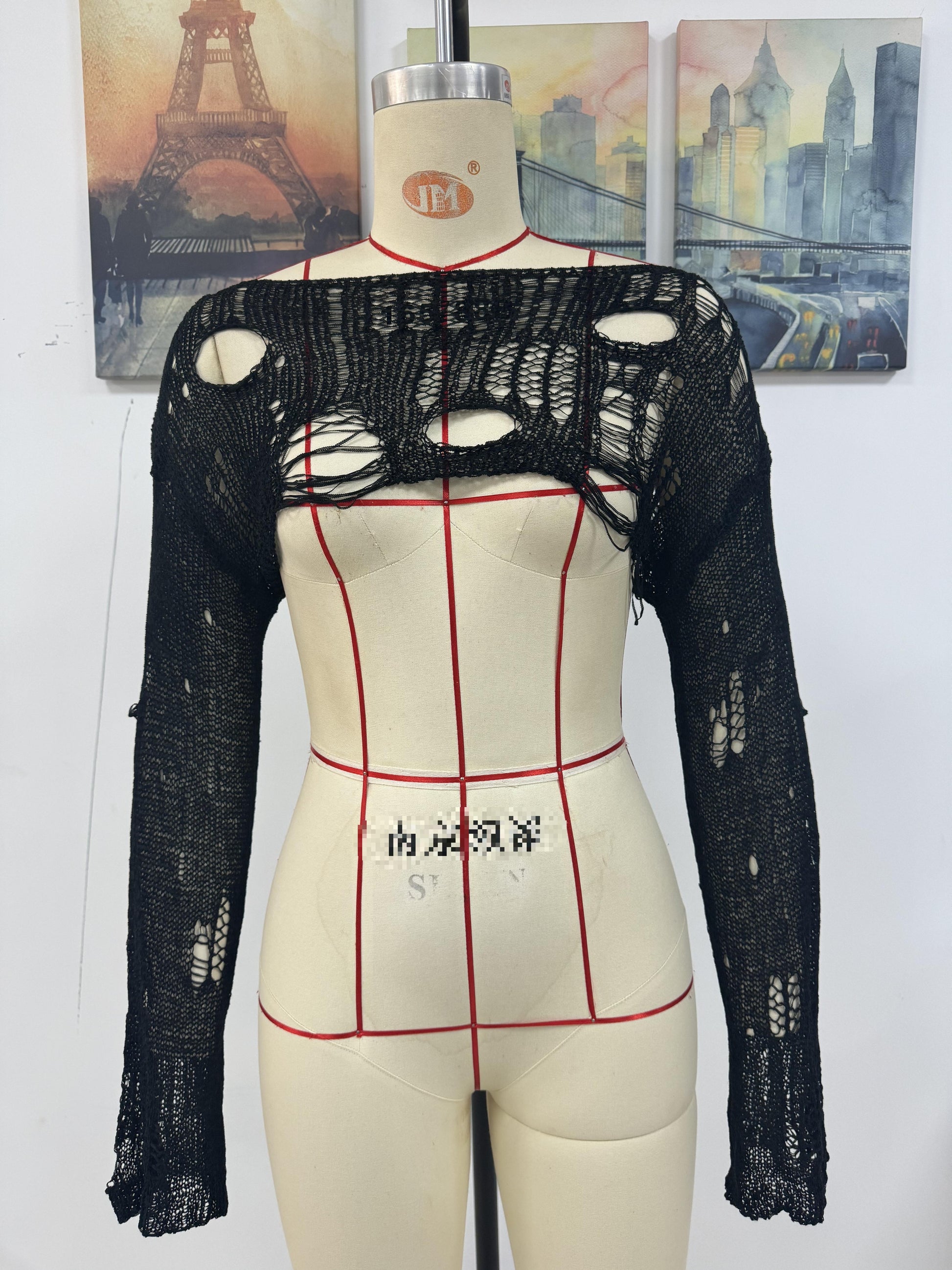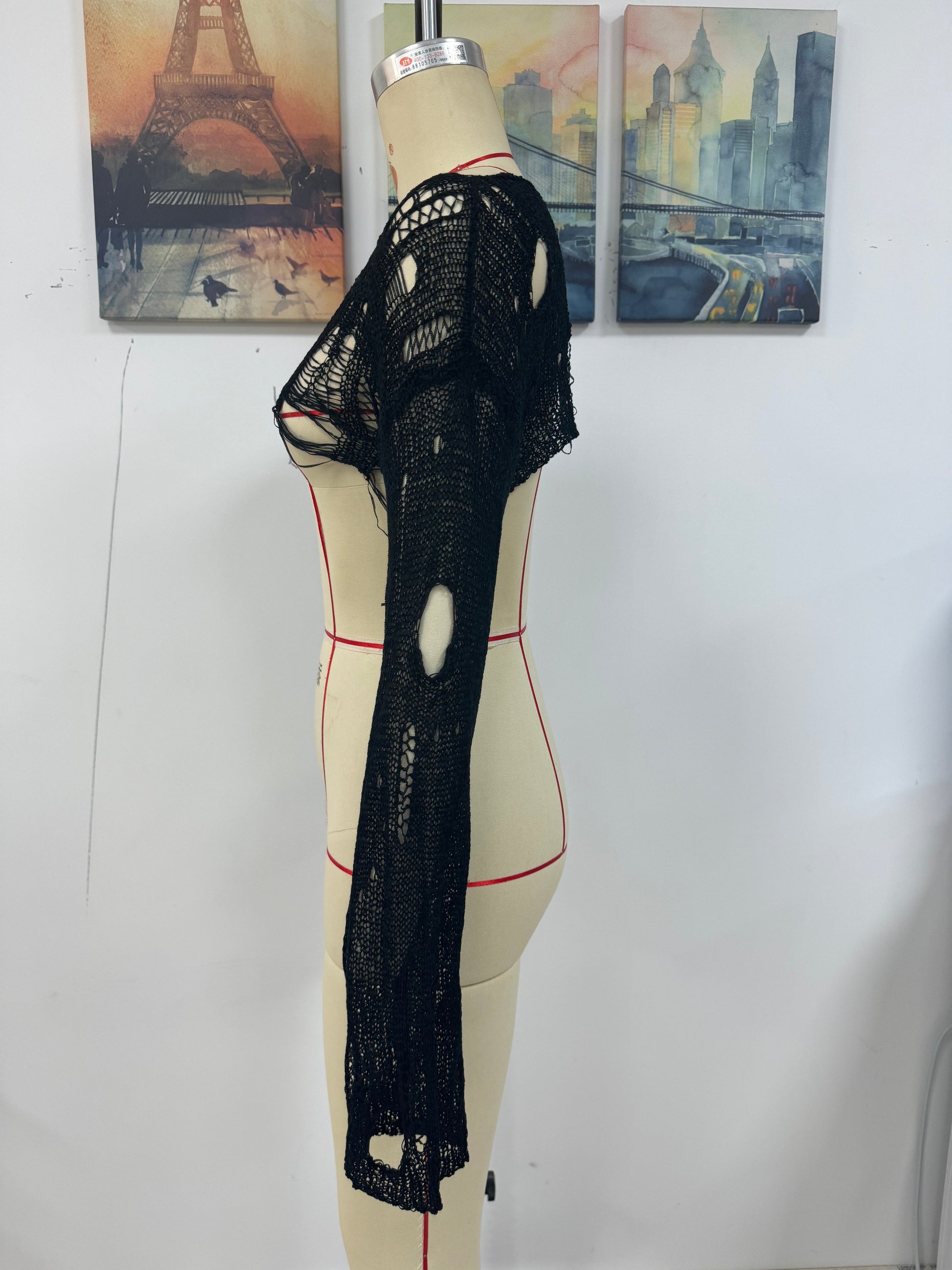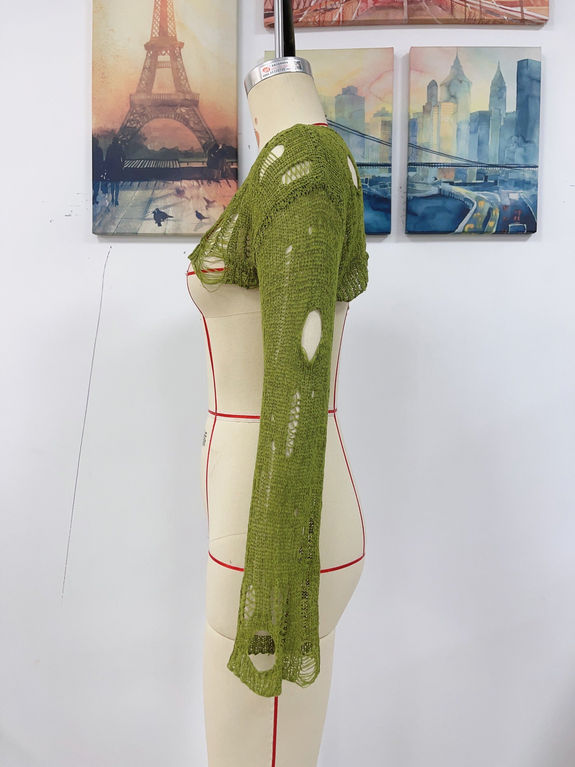 Spring Summer Beach Cover Up Solid Color Ultra Short Bell Sleeve Women Knitwear