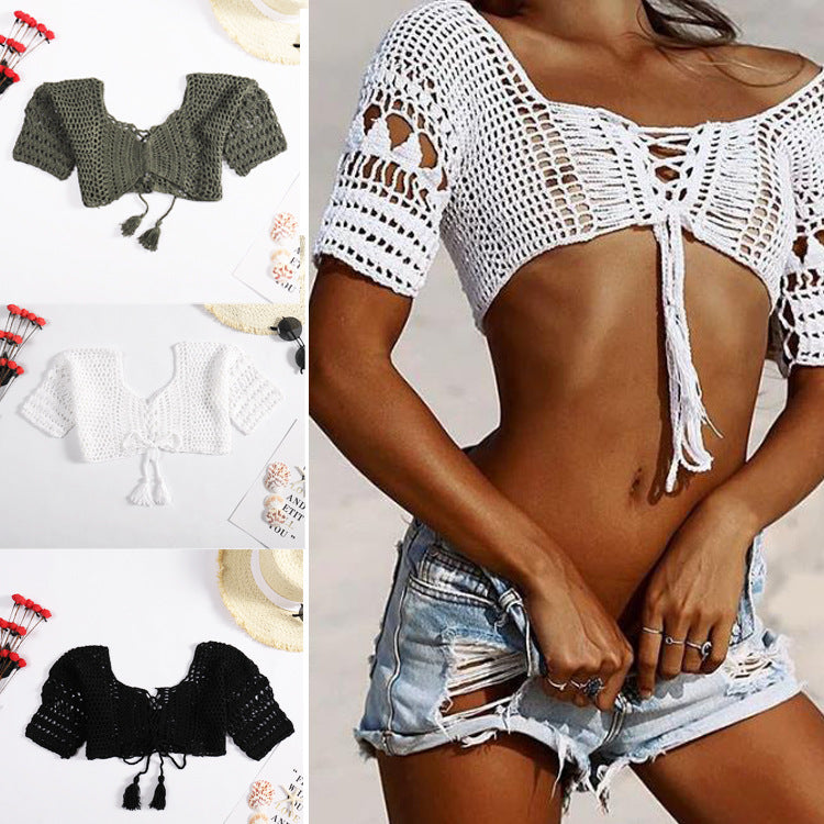 Summer Hand Crocheting Knitting Beach Cover Up Sexy Hollow Out Cutout Swimsuit Tops Women Crochet hook