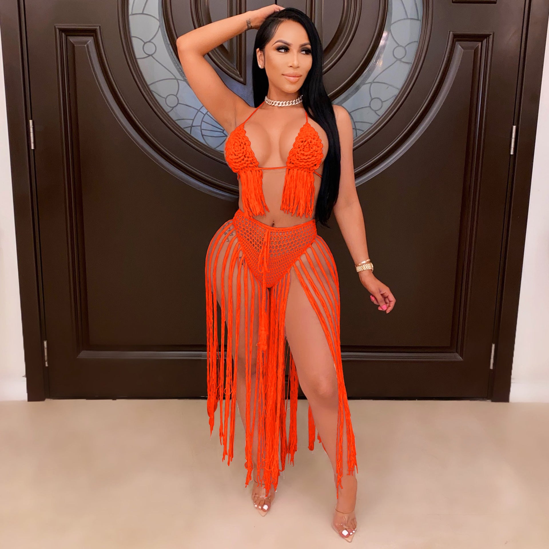 Women Clothing Sexy Hand Crocheted Floral Woven Ladies Beachwear Swimsuit Outfit