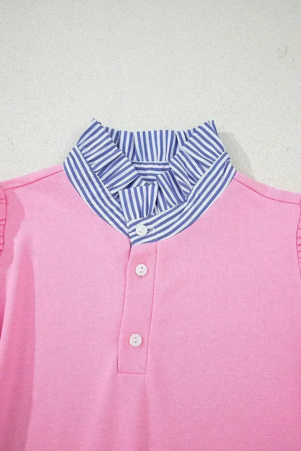 Bonbon Striped Collar Puff Sleeve Sweatshirt