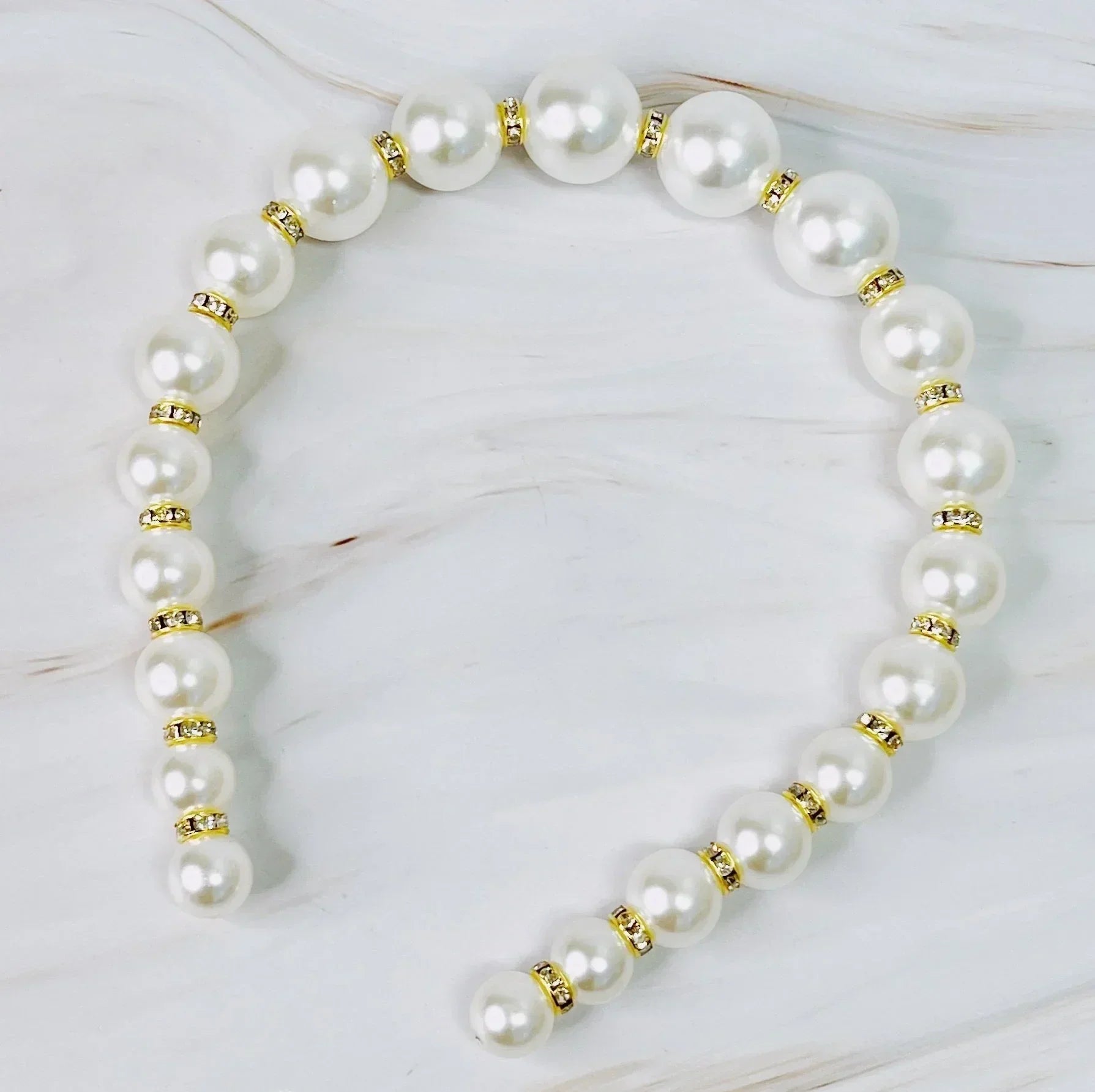 This headband features a stunningly pearled design with a cool pearl growing effect. Each pearl is placed next to a sparkling jewel, making it perfect for both everyday wear and special occasions like weddings.