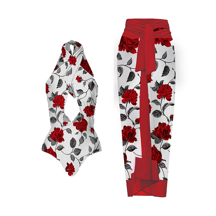 Sexy One Piece Swimsuit Women Bikini Printed Swimsuit Bikini Mesh Dress