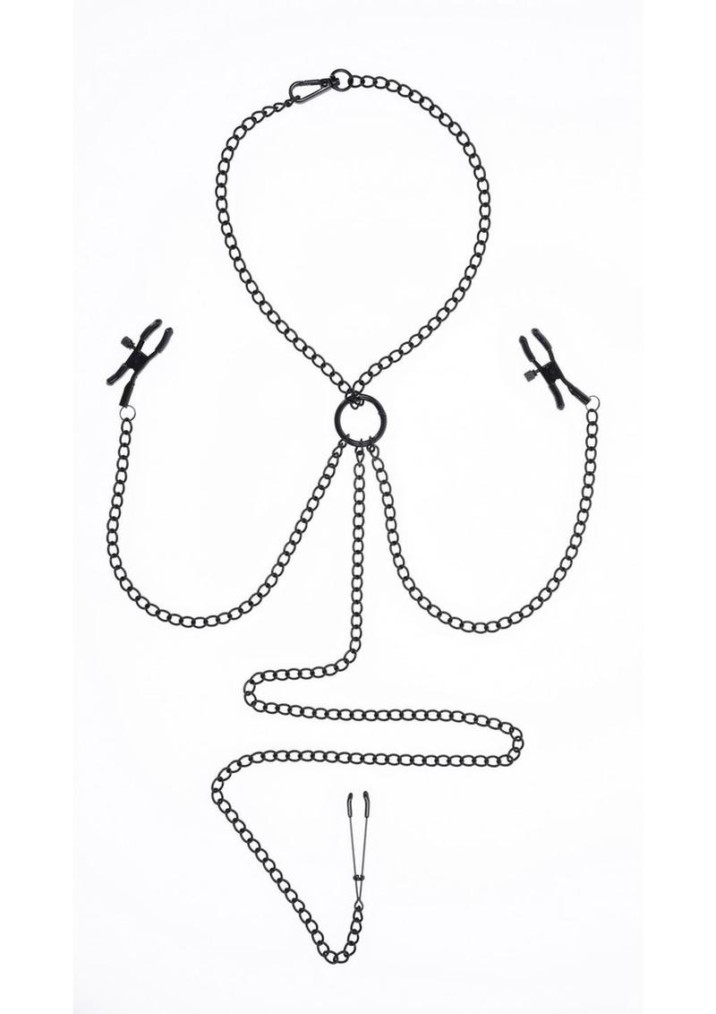 Unleash your wild side with the Sportsheets Saffron Nipple to Clit Set. This versatile bondage toy enhances your pleasure through nipple and clit stimulation, designed for lovers who enjoy an exciting mix of sensuality and restraint. With its adjustable chain, you can create the perfect fit for an intimate, thrilling experience. Ideal for beginners and seasoned players alike, this set adds the perfect blend of erotic energy and excitement to your pleasure play.