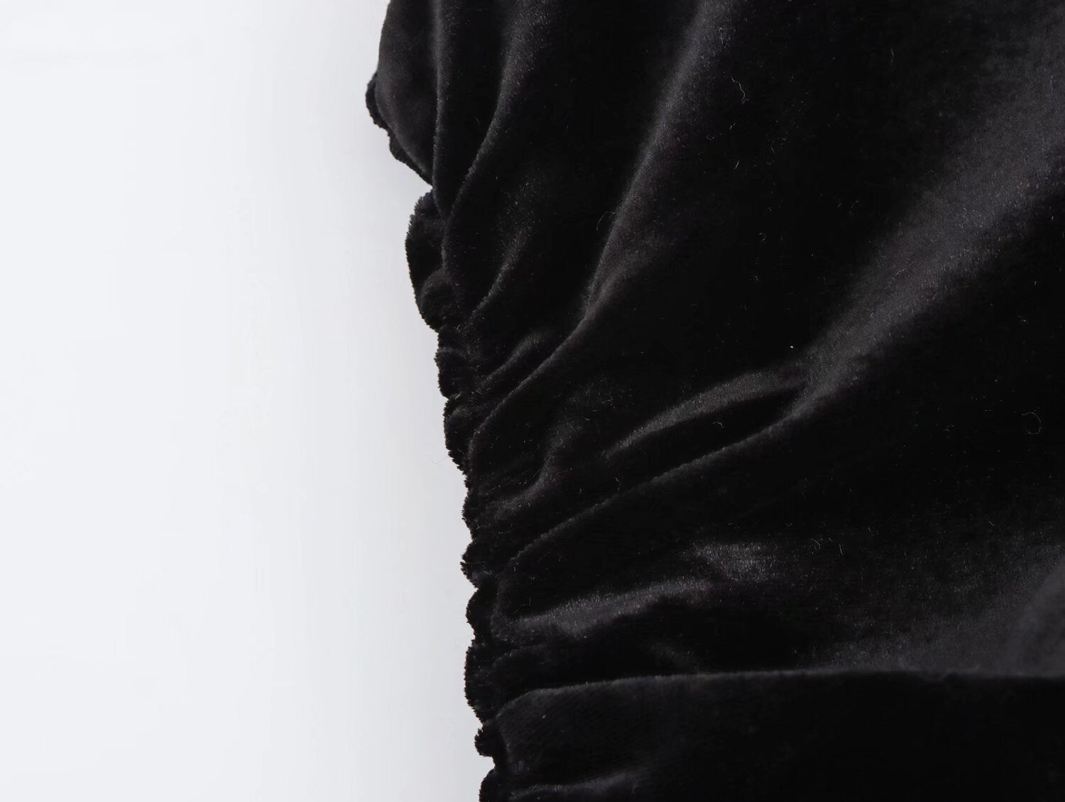 Spring Women Elegant Velvet Texture Pleated Midi Dress