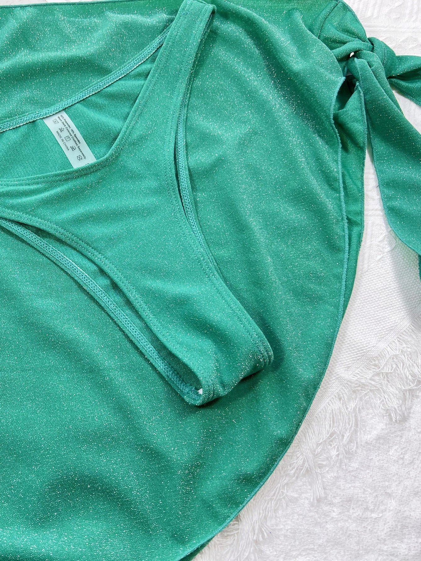 Three-Piece Bikini Solid Color Sexy Women Split Swimsuit Triangle Bag Glitter Swimsuit